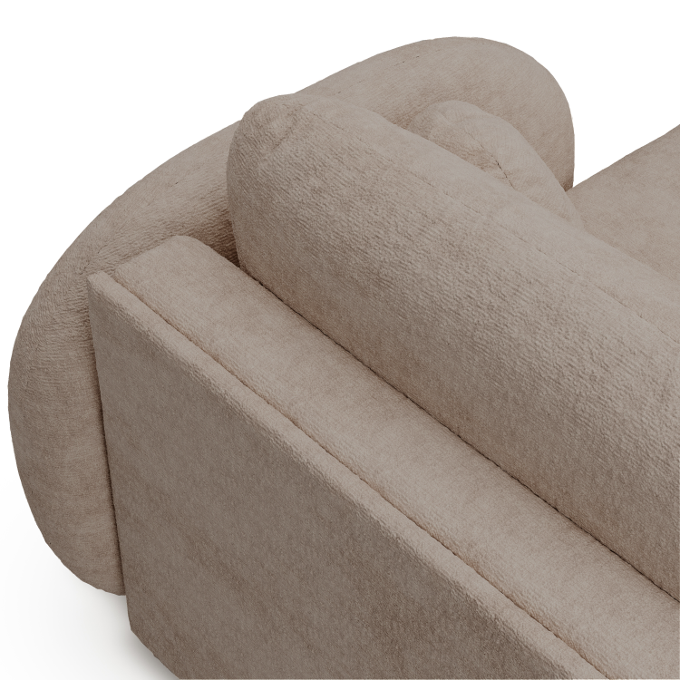 Revêtu d'un tissu bouclette, le canapé CARLOTTA mise sur la douceur. Cette matière texturée, particulièrement tendance, invite à la détente et crée un effet cocooning immédiat. Sa teinte s'harmonise avec une multitude d'ambiances déco, qu'elles soient naturelles, contemporaines ou minimalistes.
