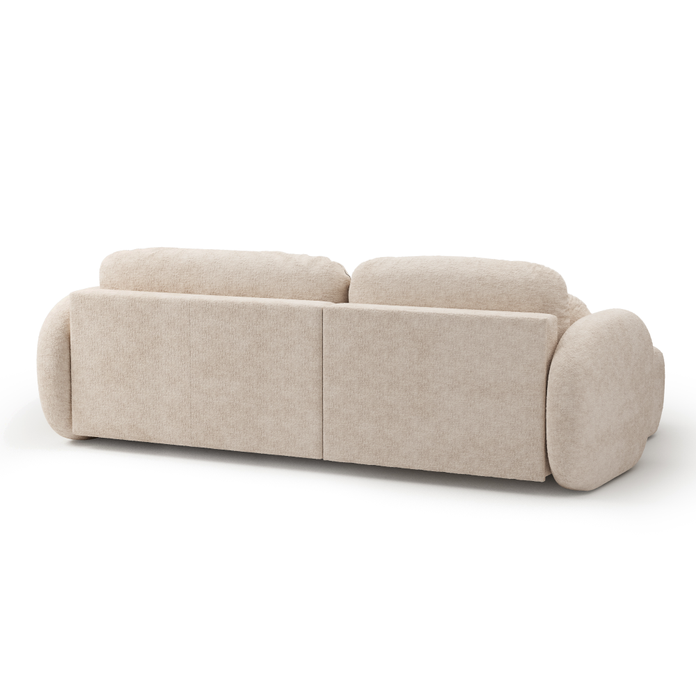 Revêtu d'un tissu bouclette, le canapé CARLOTTA mise sur la douceur. Cette matière texturée, particulièrement tendance, invite à la détente et crée un effet cocooning immédiat. Sa teinte s'harmonise avec une multitude d'ambiances déco, qu'elles soient naturelles, contemporaines ou minimalistes.