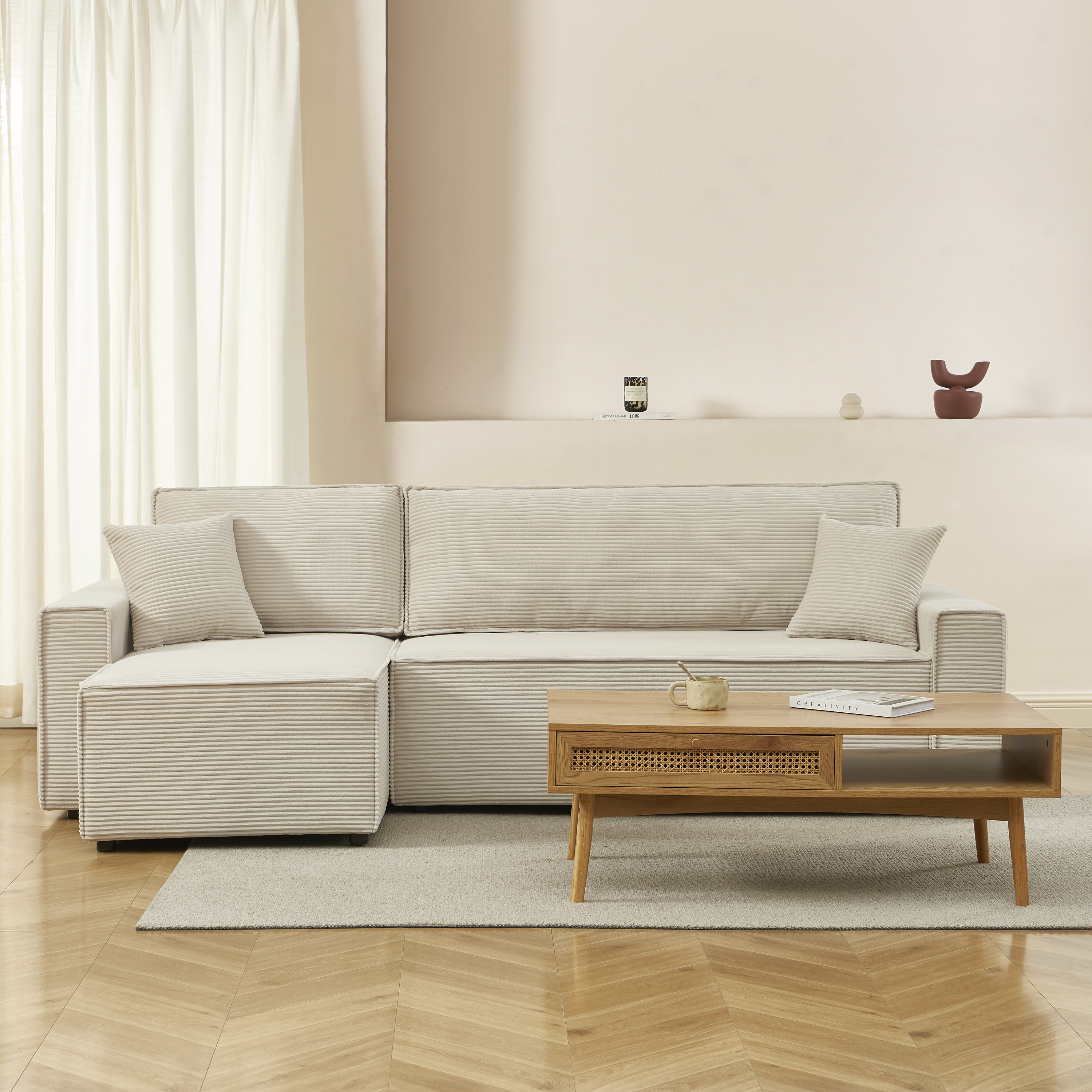 Canapé d'angle convertible et réversible 4 places ZOLA velours côtelé beige