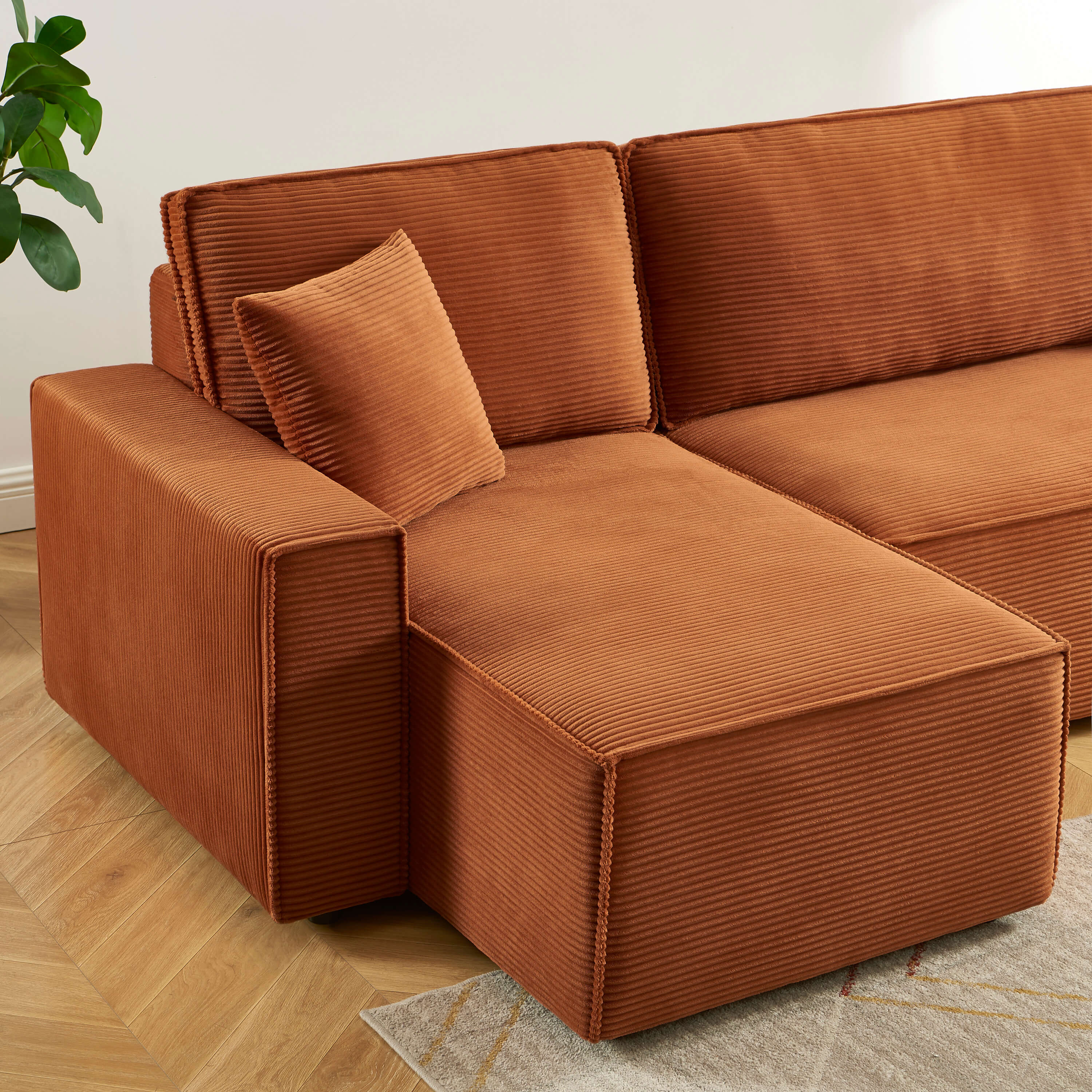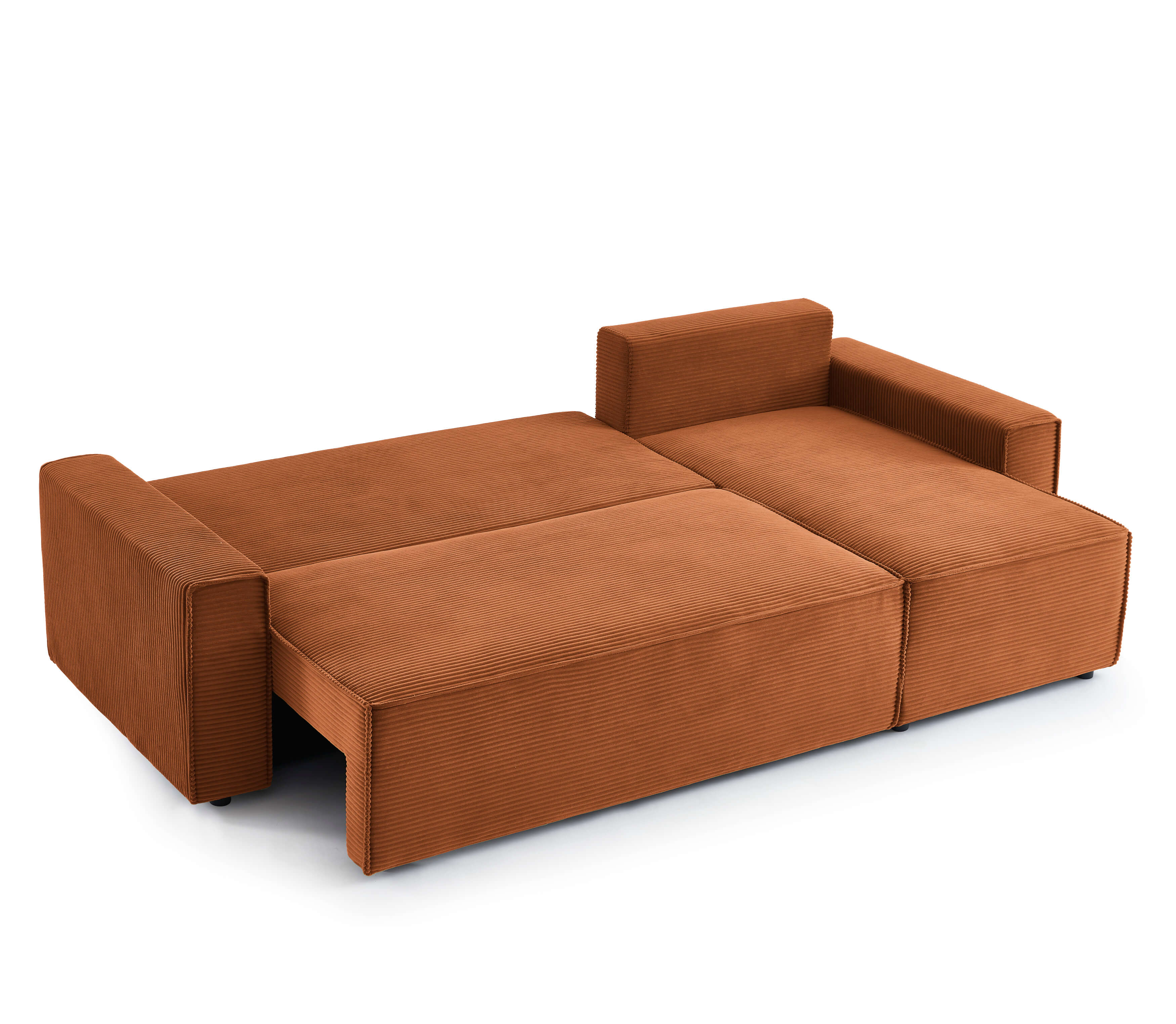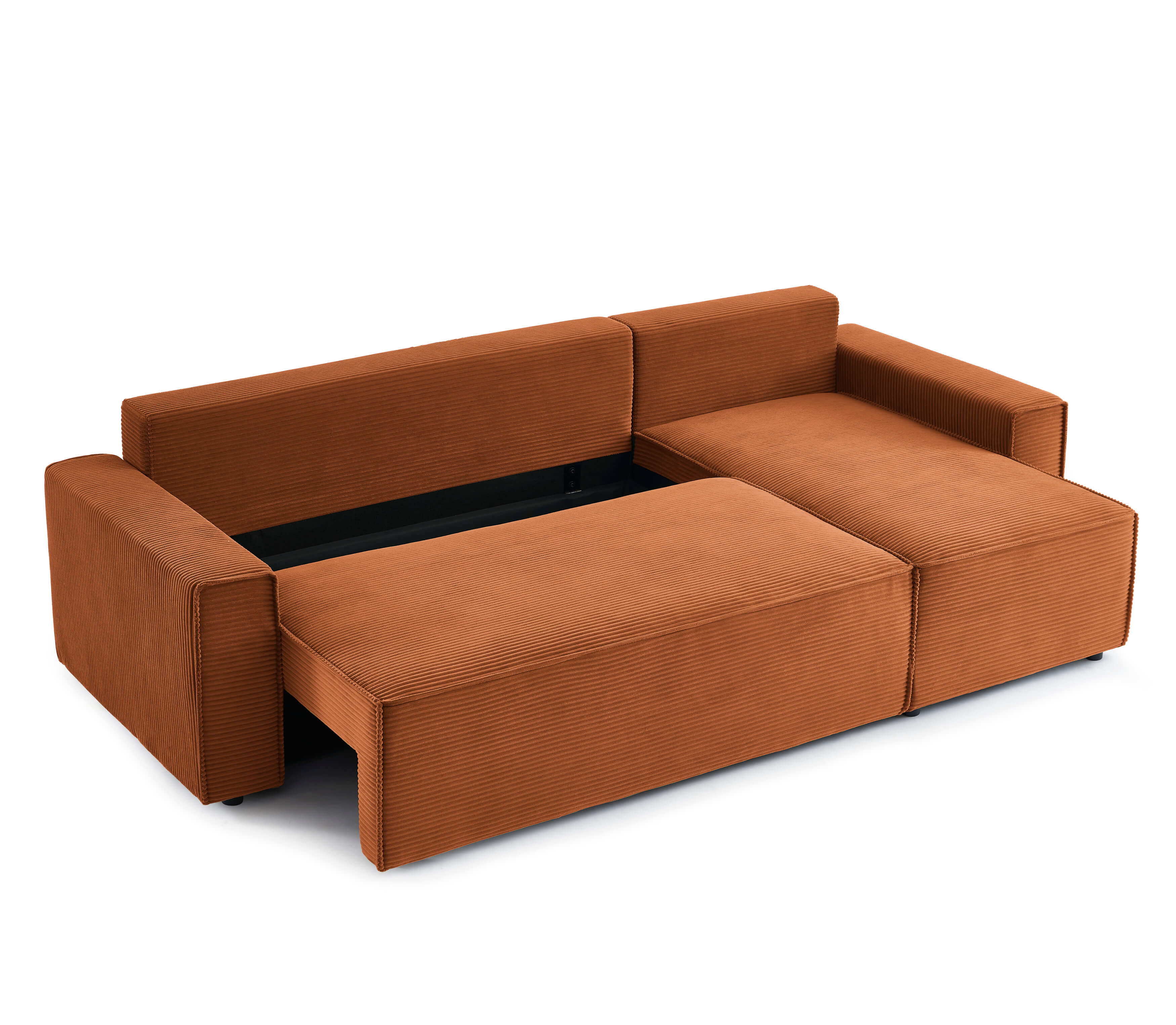 Canapé d'angle convertible et réversible 4 places ZOLA velours côtelé terracotta