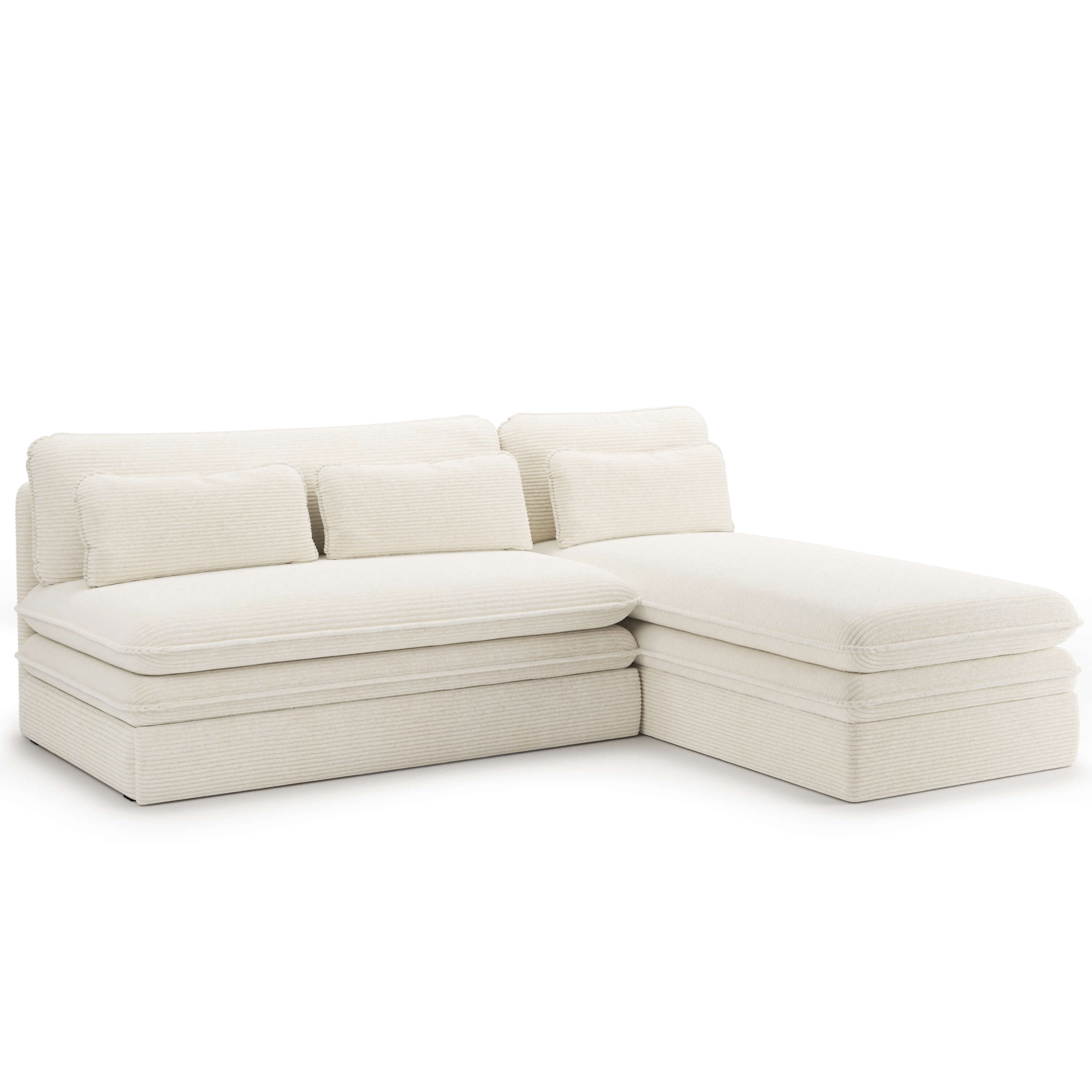 Banquette d'angle convertible et réversible NOMA 4 places velours côtelé écru