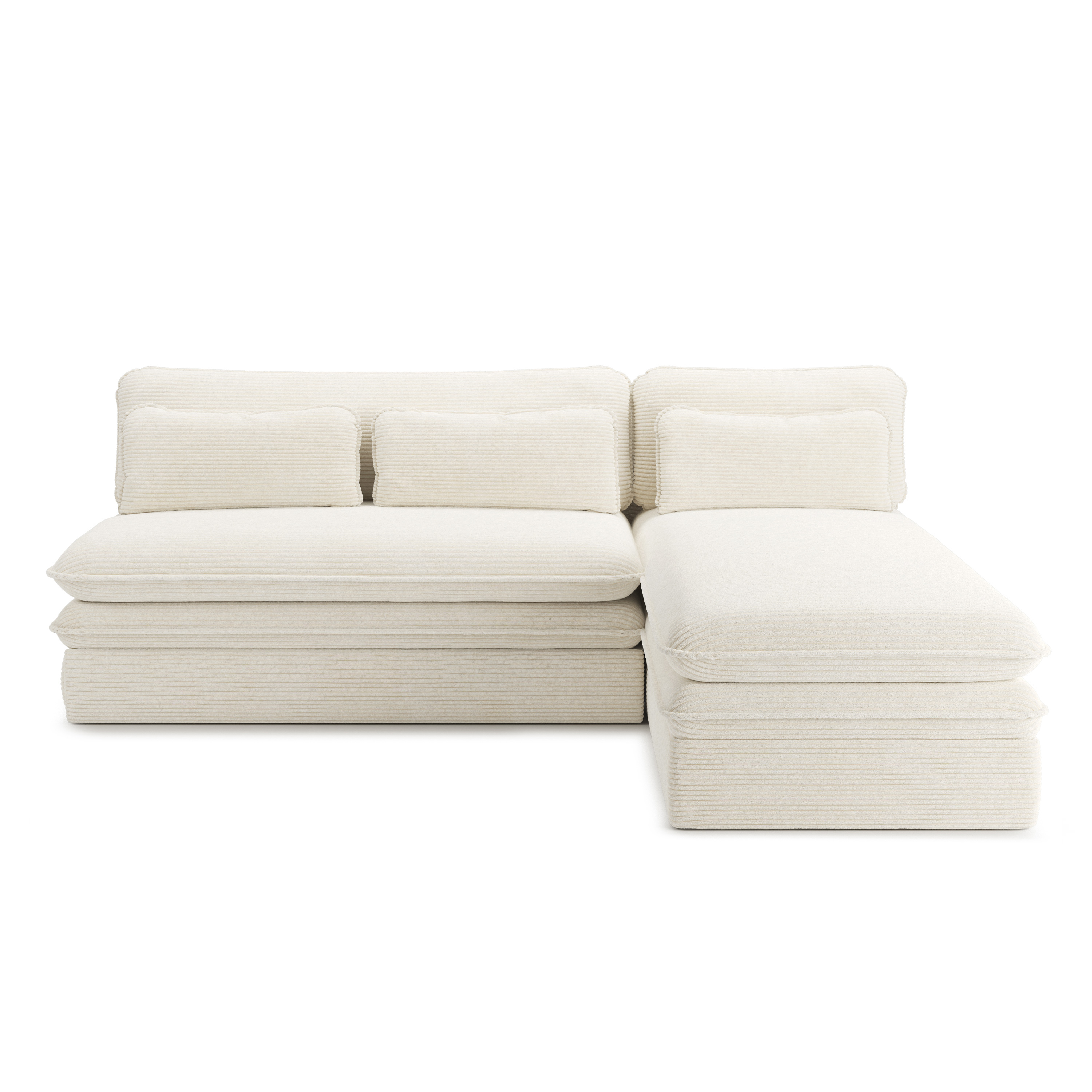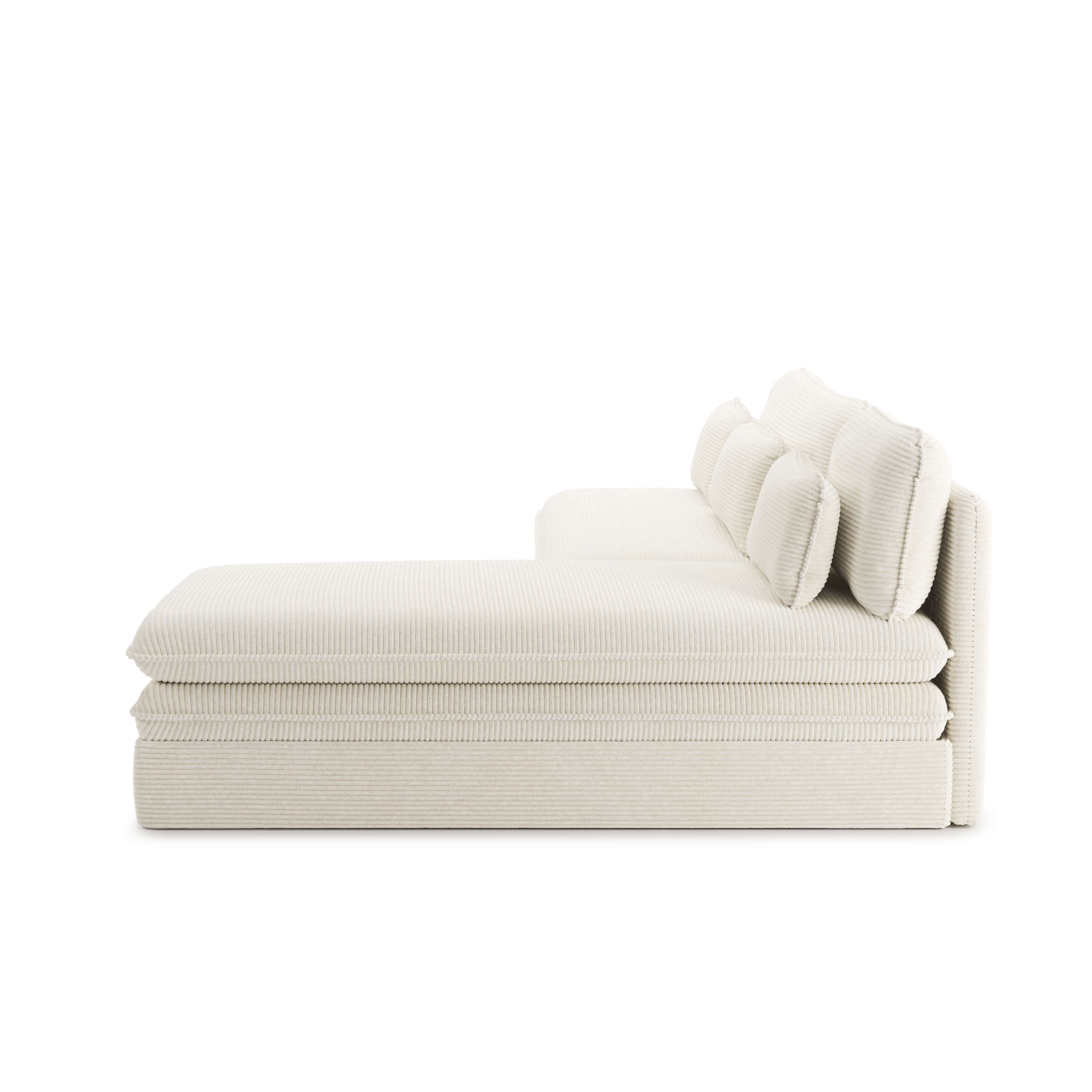 La banquette NOMA se distingue par ses couches superposées, ses lignes épurées et ses trois coussins décoratifs qui complètent son allure contemporaine. Son revêtement en velours côtelé, à la fois doux et texturé, apporte une note élégante et chaleureuse à votre pièce. Ses coussins peuvent être utilisés comme accoudoirs ou dossiers modulables pour adapter le confort selon vos envies.