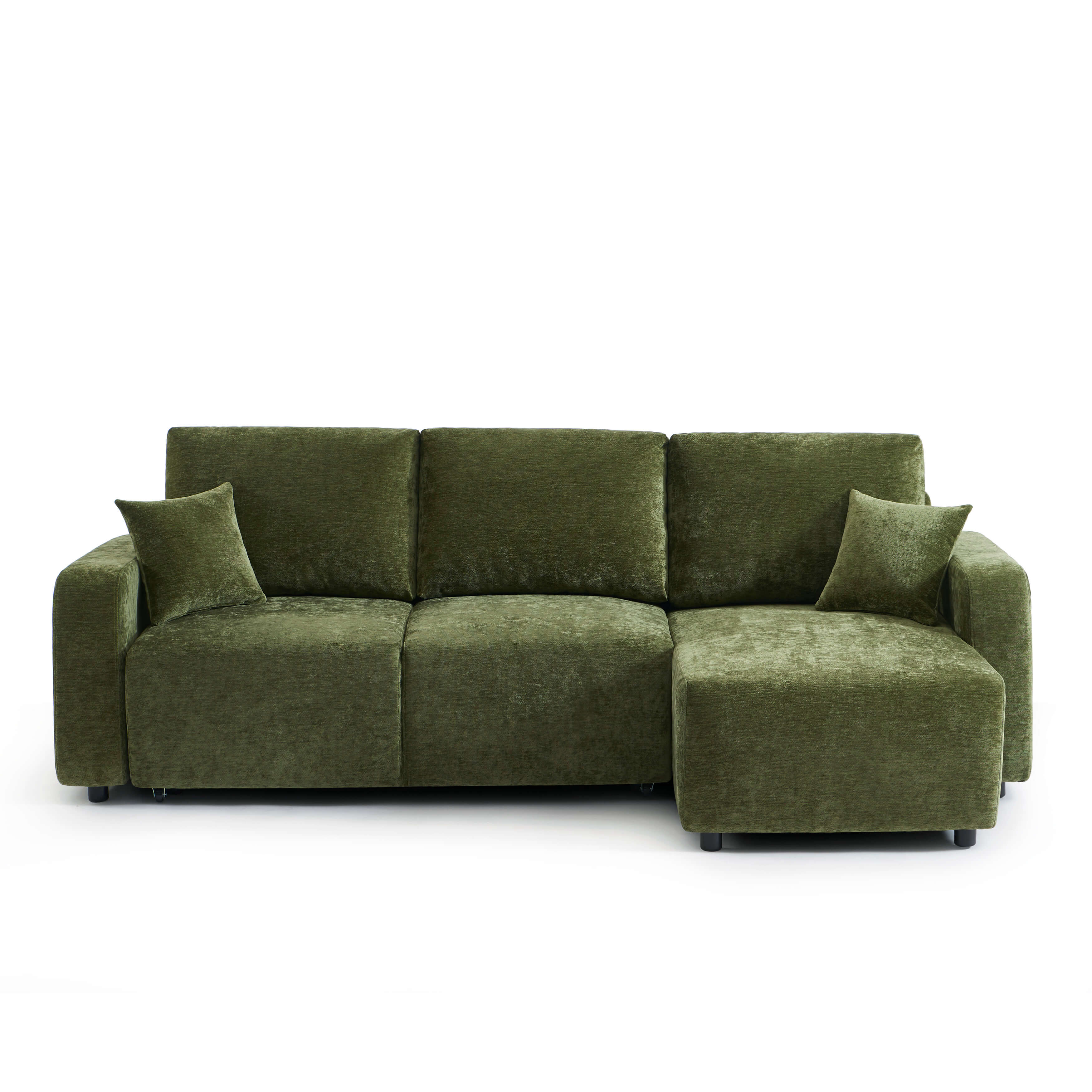 Canapé d'angle convertible et réversible LIVIO 4 places tissu vert