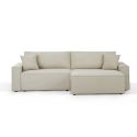 Le canapé ZOLA s'adapte à vos besoins et à votre espace. Son angle réversible vous permet de positionner la méridienne à gauche ou à droite, selon vos envies. De plus, sa fonction convertible permet de le transformer rapidement en un couchage d'appoint de 140 x 210 cm, parfait pour accueillir famille et amis en toute simplicité. Sous l'assise, vous trouverez un coffre de rangement, idéal pour y stocker vos coussins et plaids.