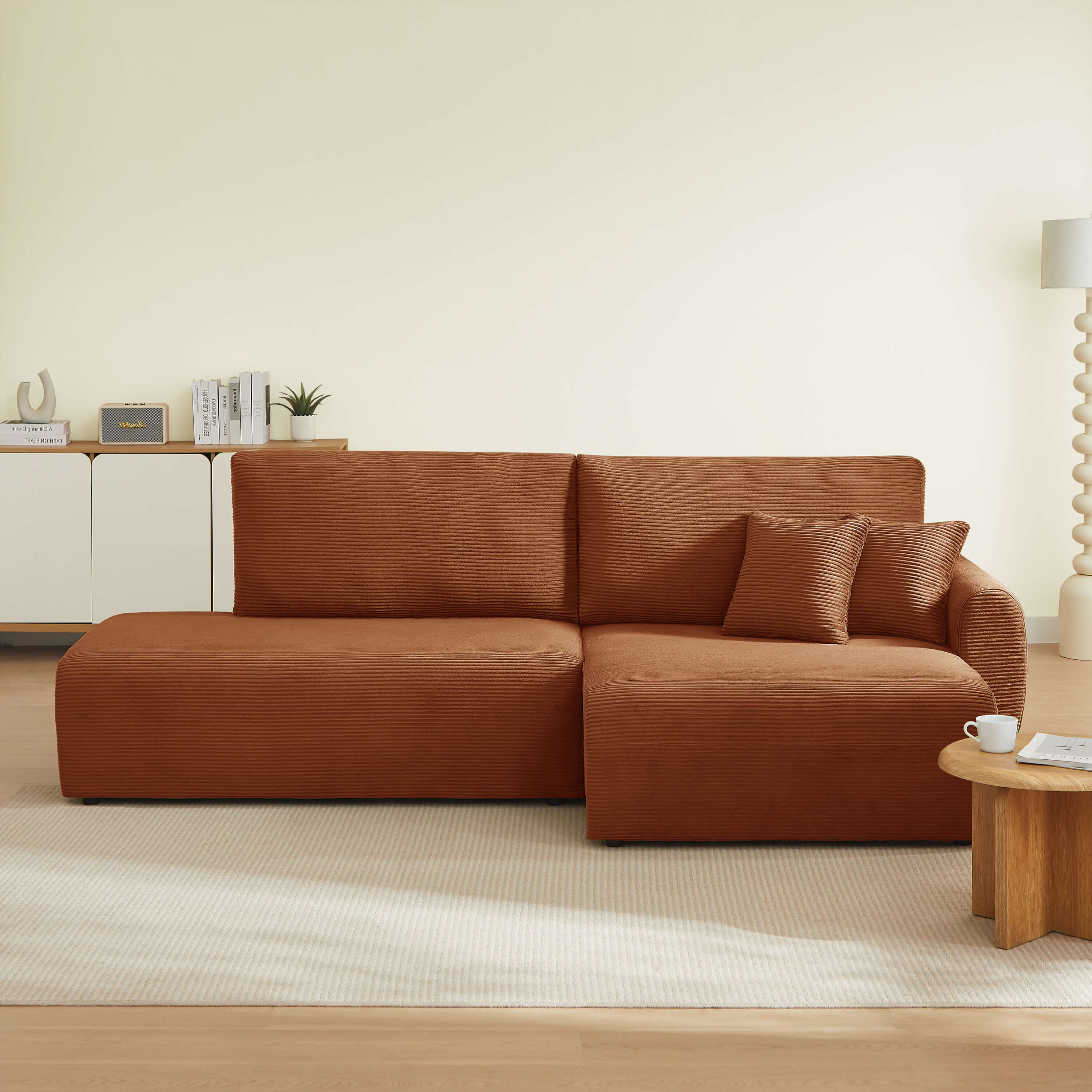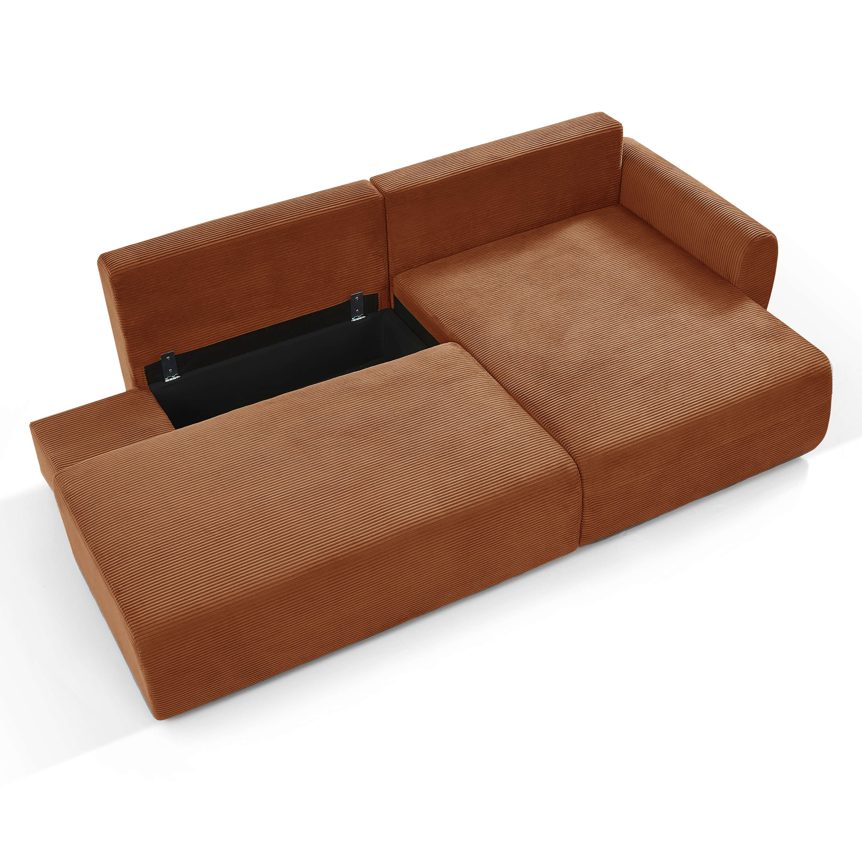 Canapé d'angle droit ouvert convertible DANILO 4 places velours côtelé terracotta