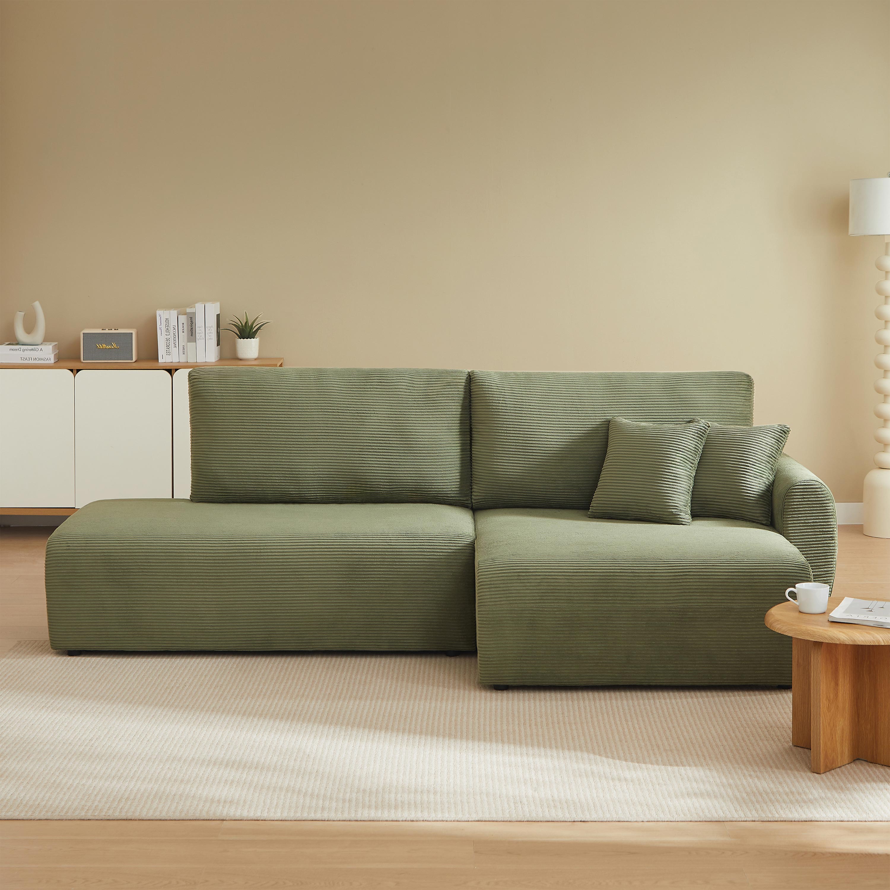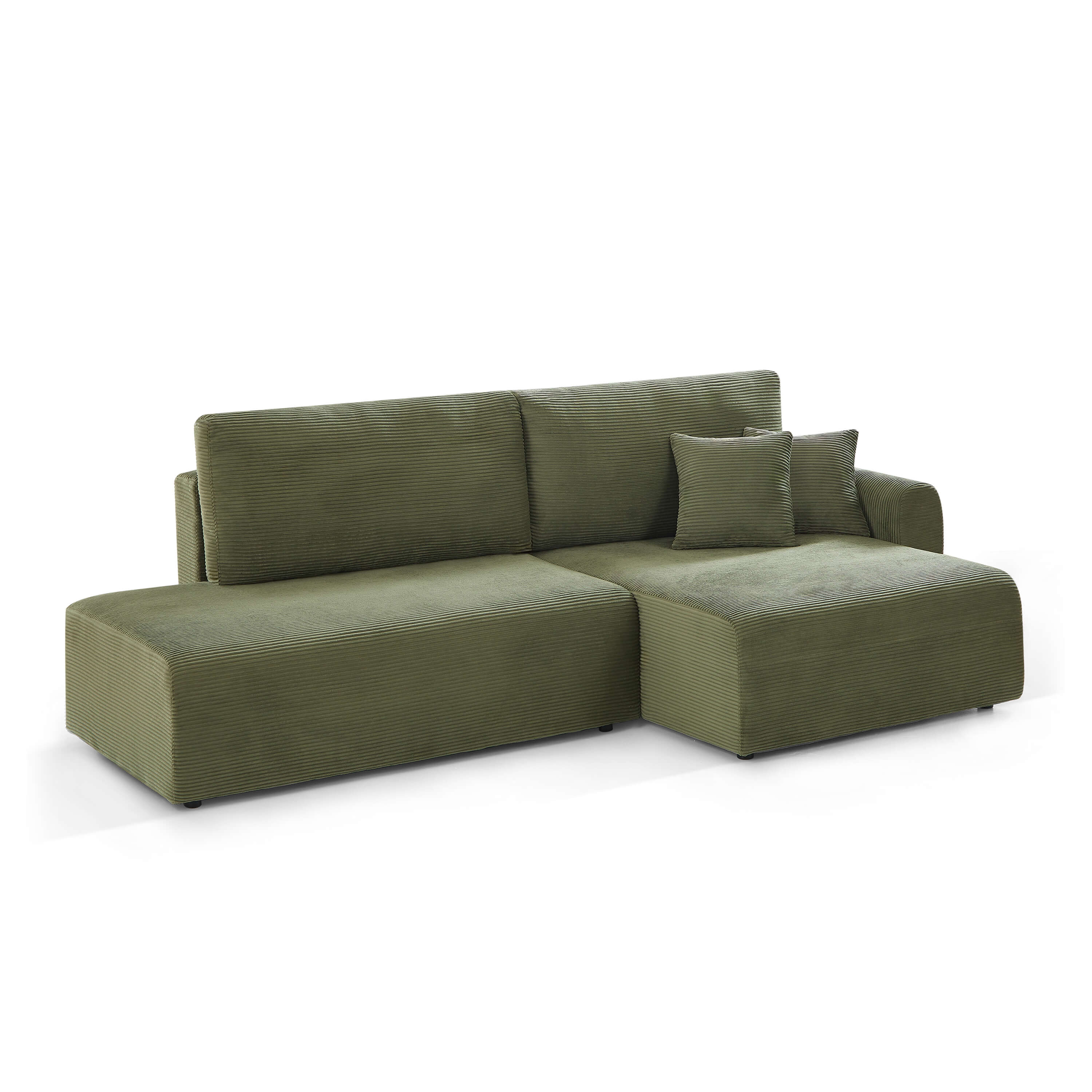 Canapé d'angle droit ouvert convertible DANILO 4 places velours côtelé vert