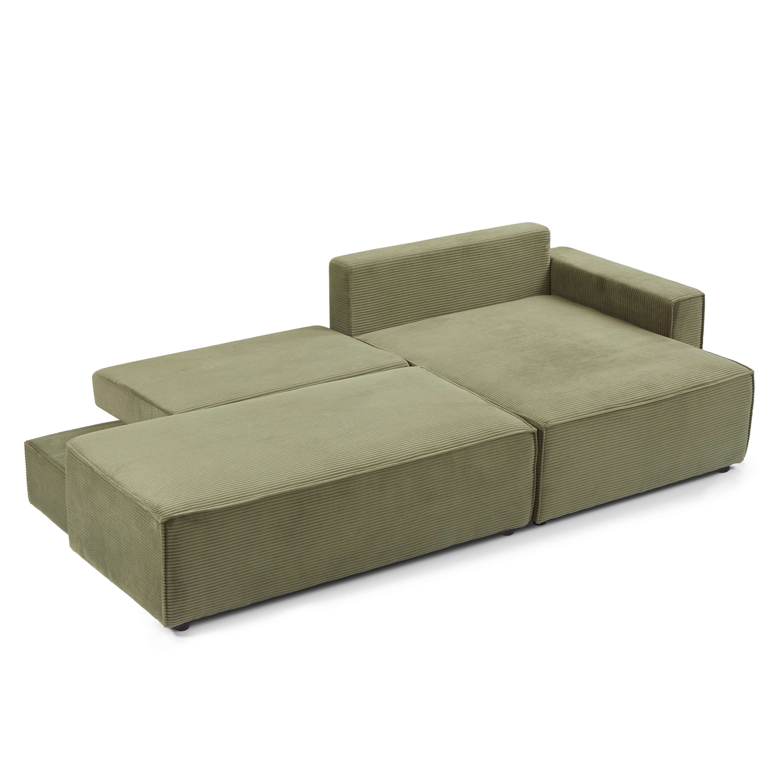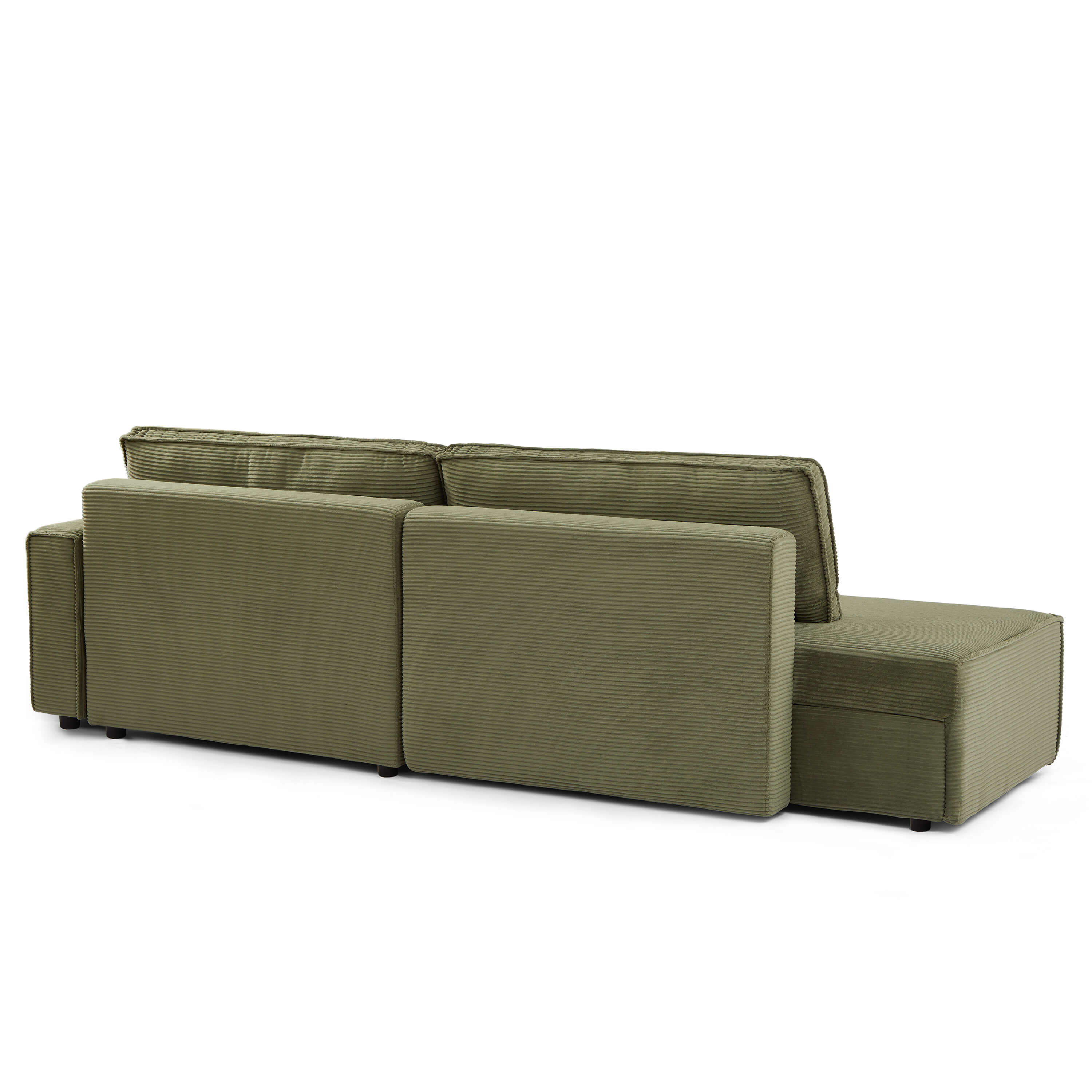 Canapé d'angle droit ouvert convertible ZOLA 4 places velours cotelé vert