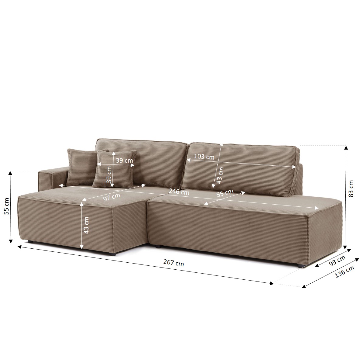 équilibréCréez une ambiance cocooning dans votre salon avec le canapé d'angle convertible 4 places ZOLA en velours côtelé
