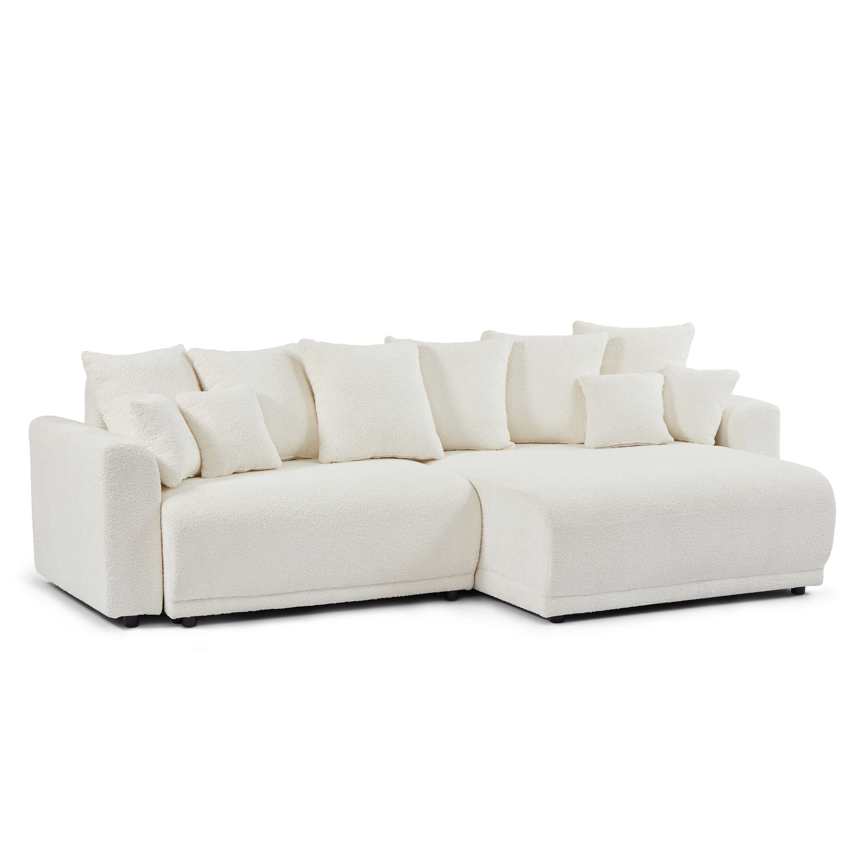 Craquez pour le canapé d'angle convertible et réversible SOLINE, un parfait mélange entre style, confort et praticité. Grâce à son design moderne et à son revêtement en tissu bouclette, il s'intègre facilement dans tous types d'intérieur, du contemporain au bohème.