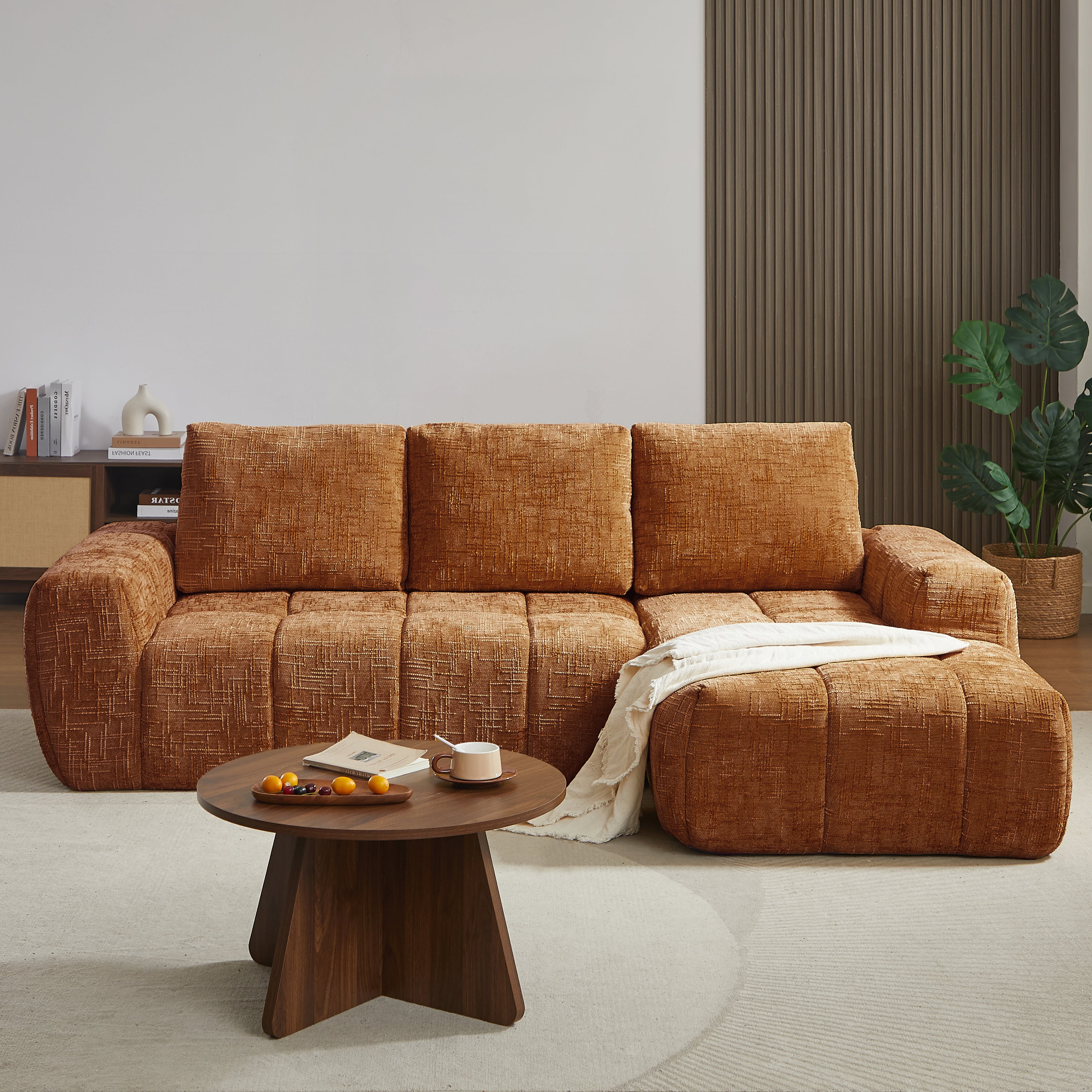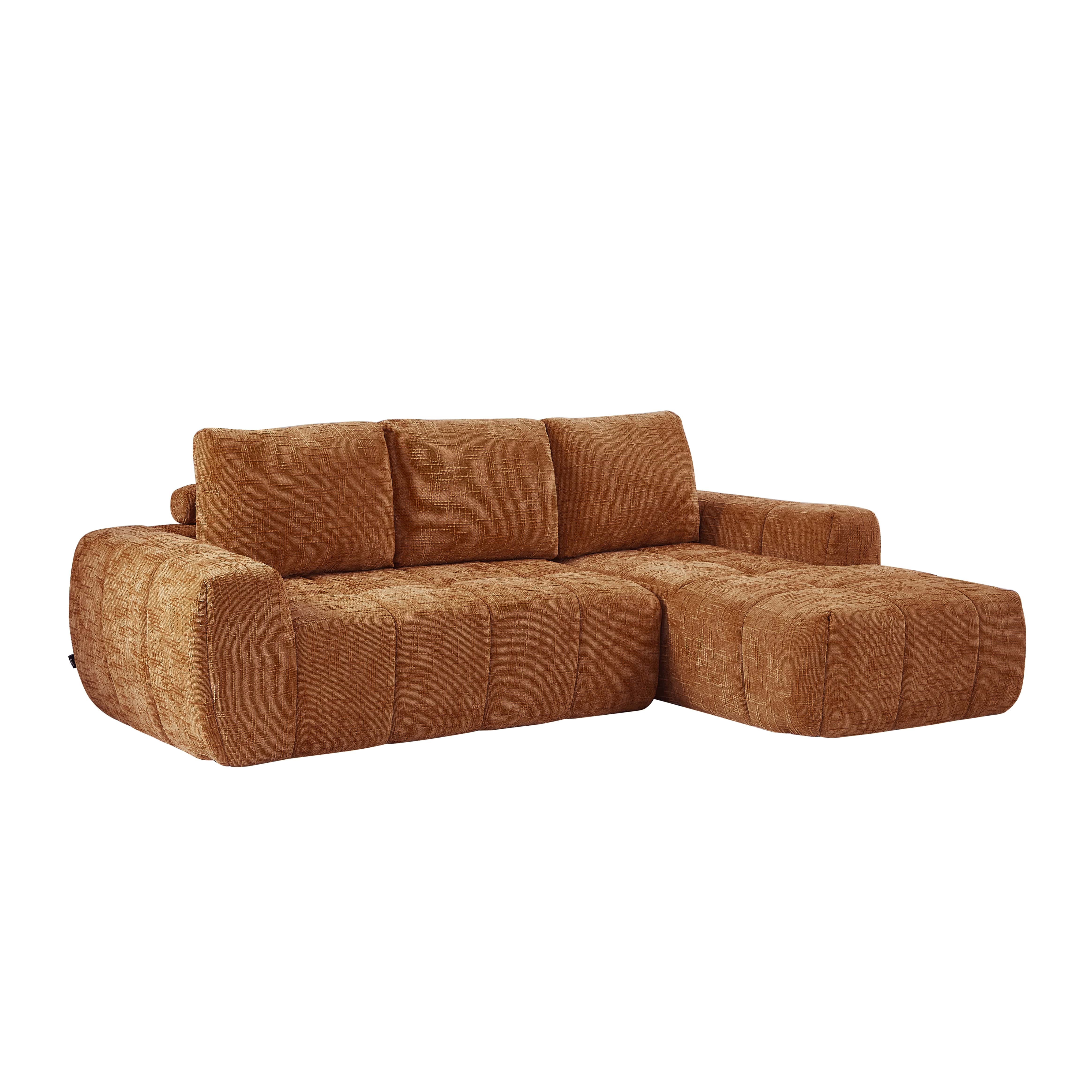Canapé d'angle droit compressé AUREA 4 places tissu terracotta