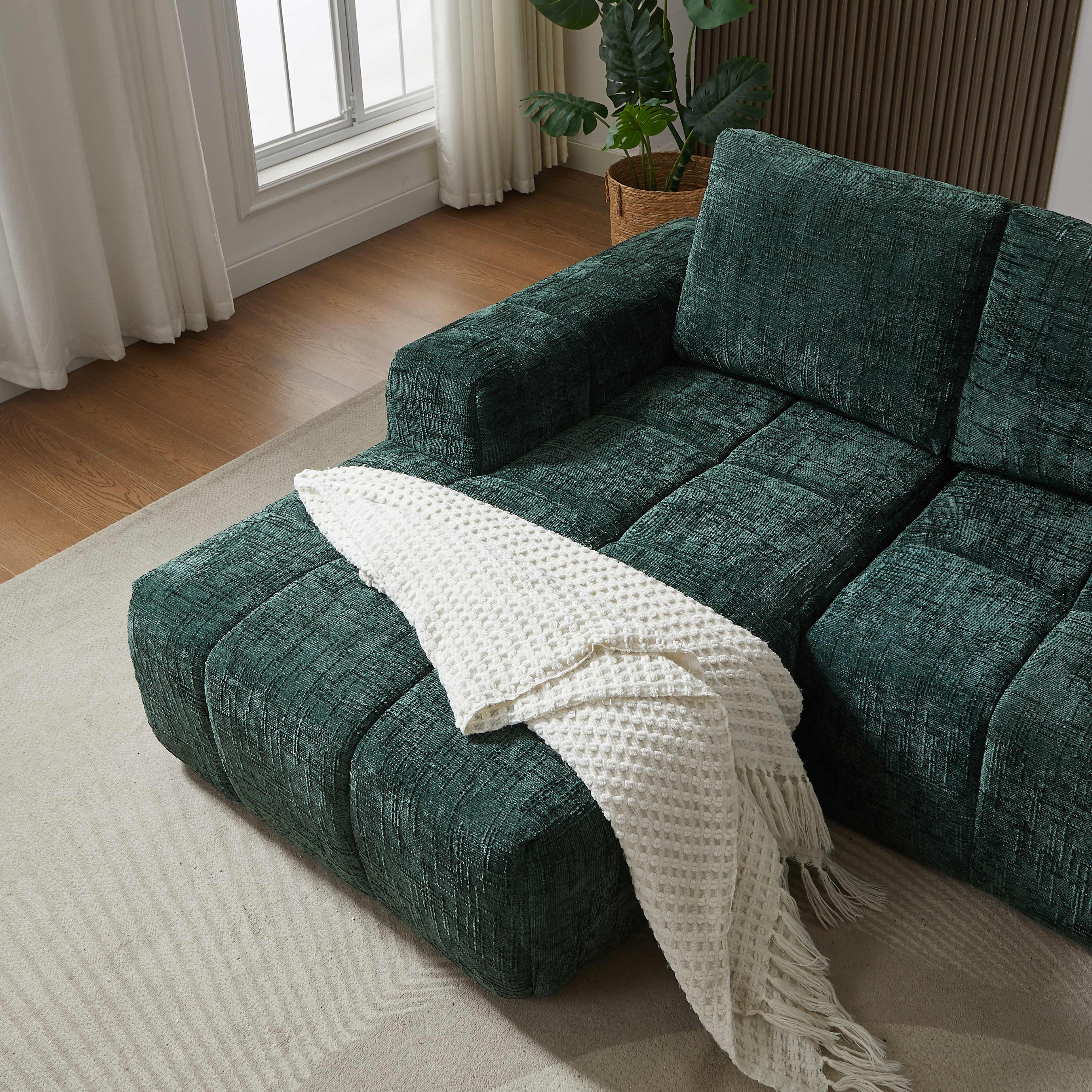 Canapé d'angle gauche compressé AUREA 4 places tissu vert