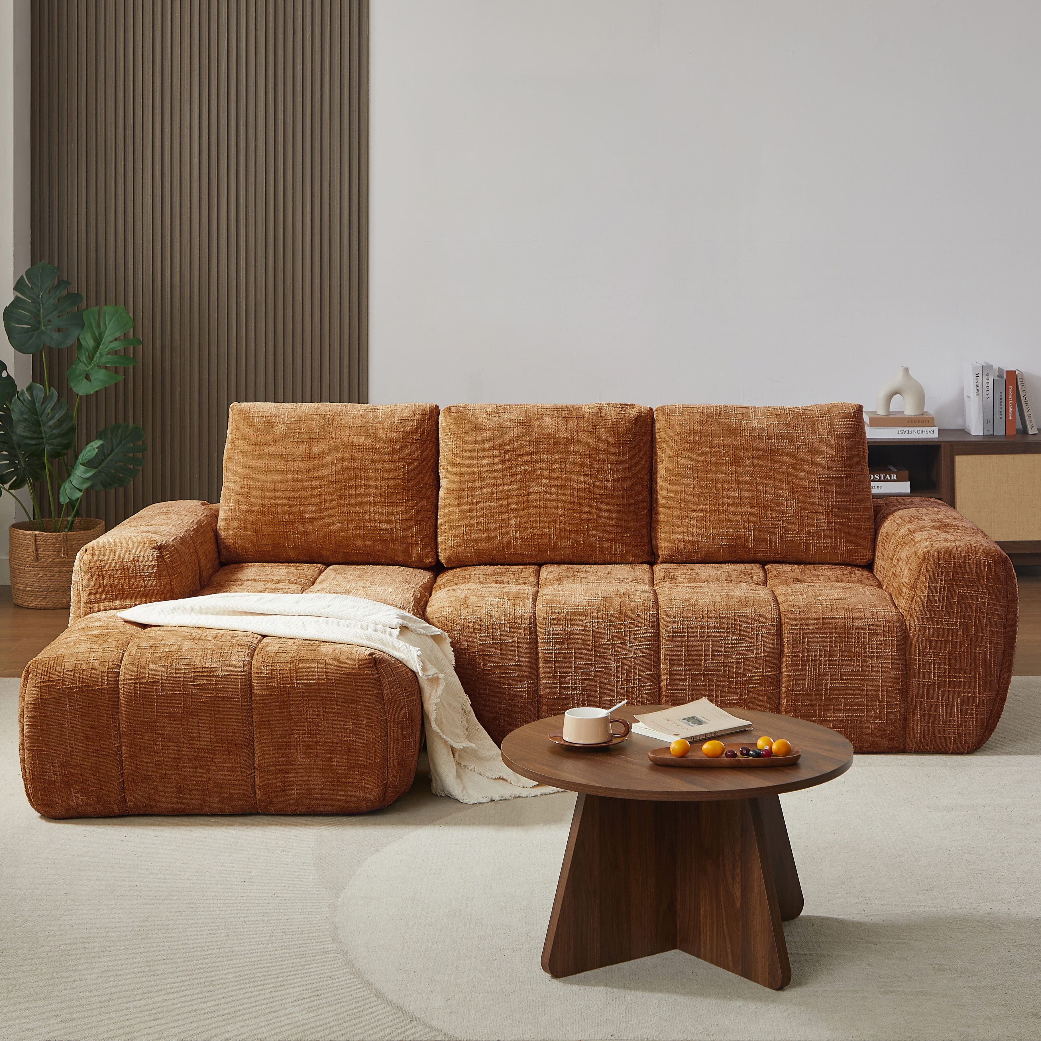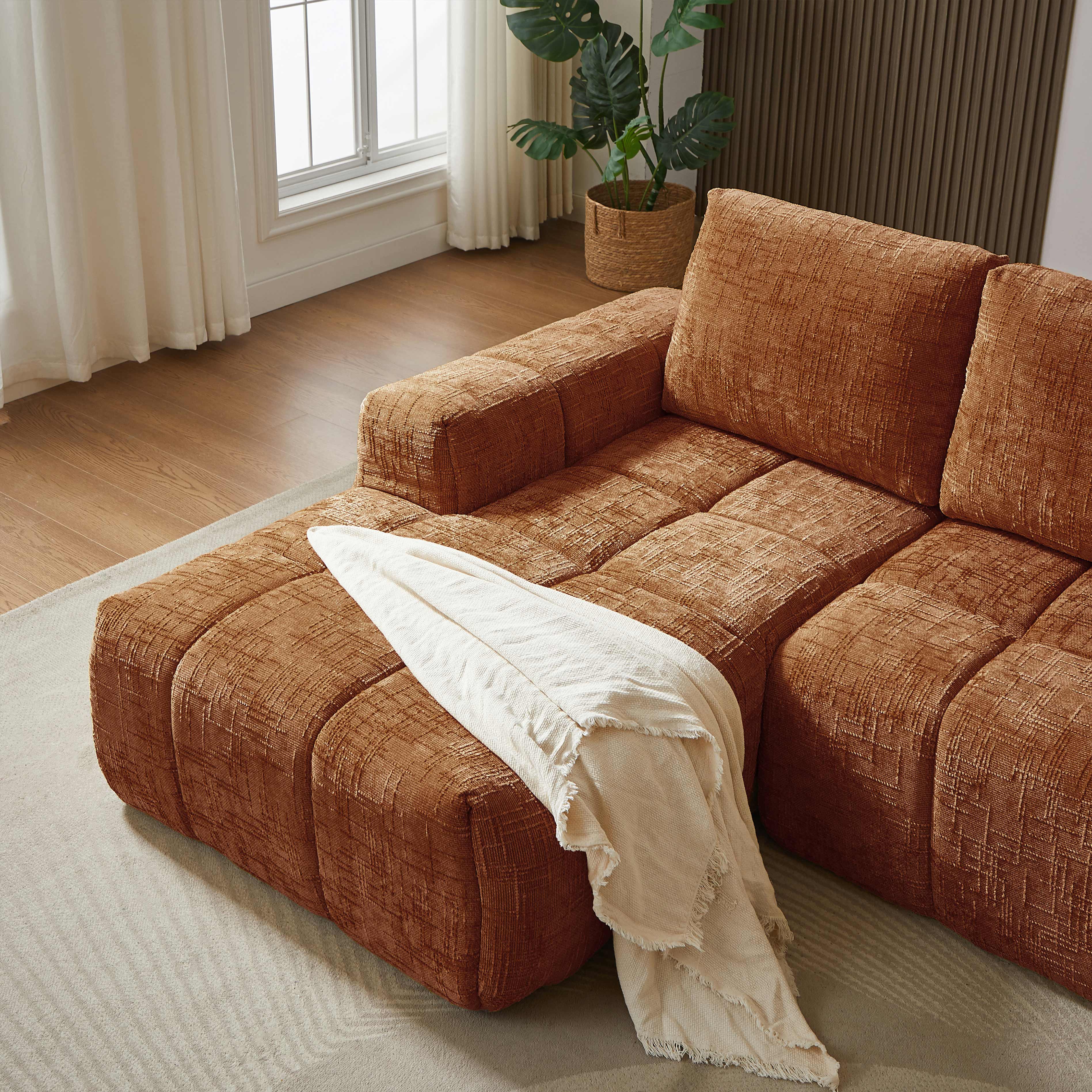 Canapé d'angle gauche compressé AUREA 4 places tissu terracotta
