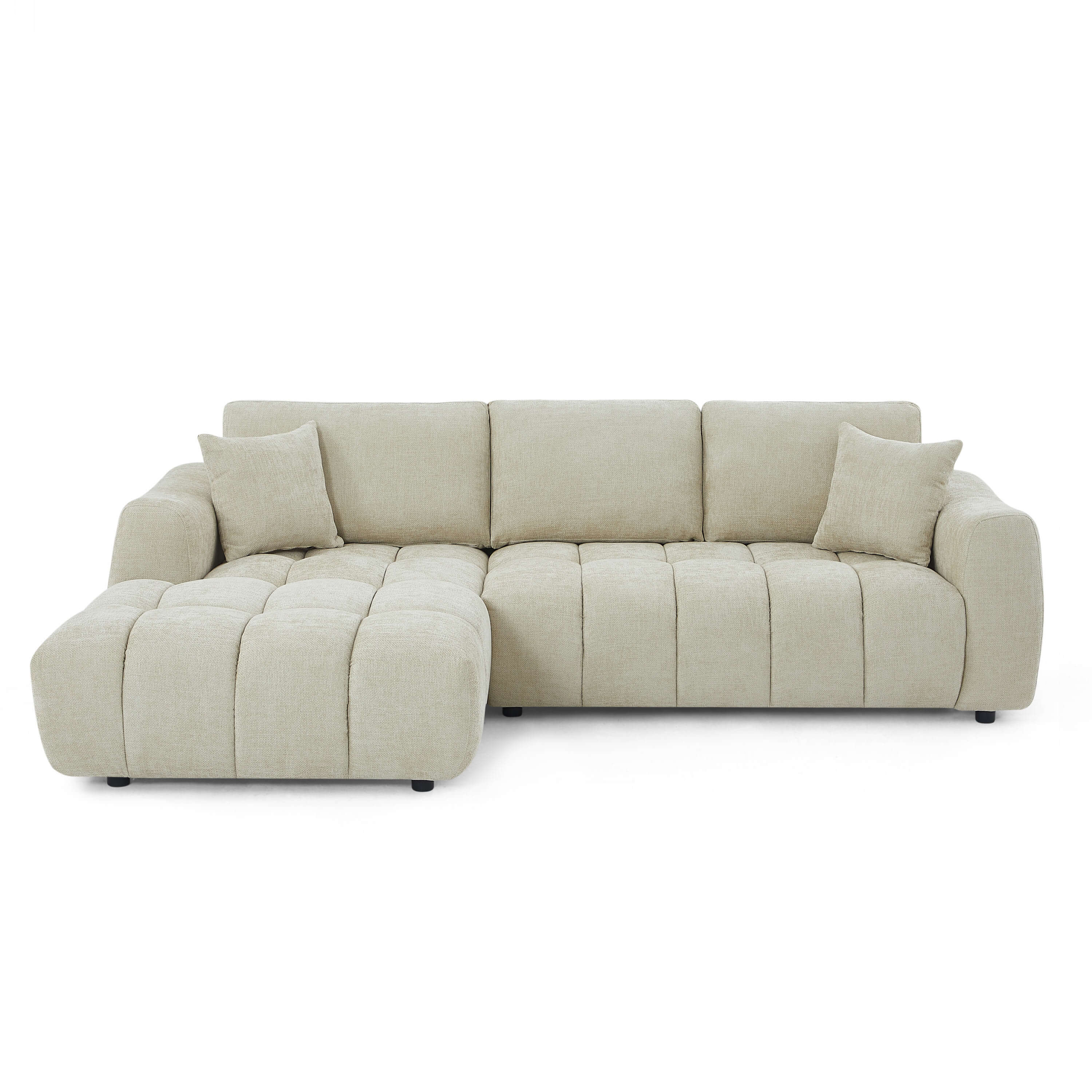 moelleuxLe canapé d'angle KEREA allie tissu chenille tendance et assise matelassée grand confort pour une expérience de détente unique.