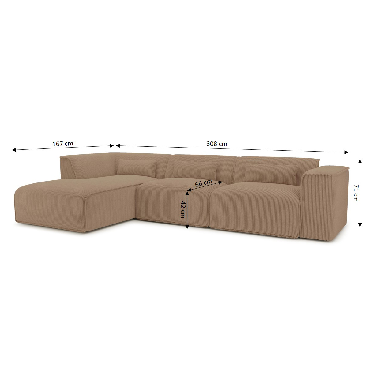 Son assise dotée d'une densité de 30 kg/m³ offre un excellent compromis entre maintien et confort. Avec une hauteur d'assise 42 cm, il garantit un confort optimal pour les moments de repos comme pour les discussions prolongées.
