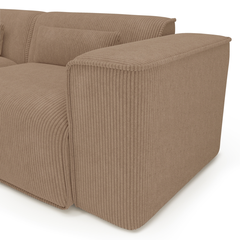 Habillé d'un velours côtelé 100 % polyester au grammage de 380 g/m², le canapé NUNA se distingue par sa teinte facile à associer. Ses lignes contemporaines et son allure sobre lui permettent de s'intégrer dans de nombreuses ambiances : moderne, minimaliste ou naturelle.