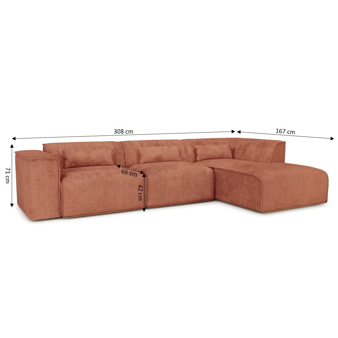Canapé d'angle droit fixe NUNA 5/6 places tissu terracotta