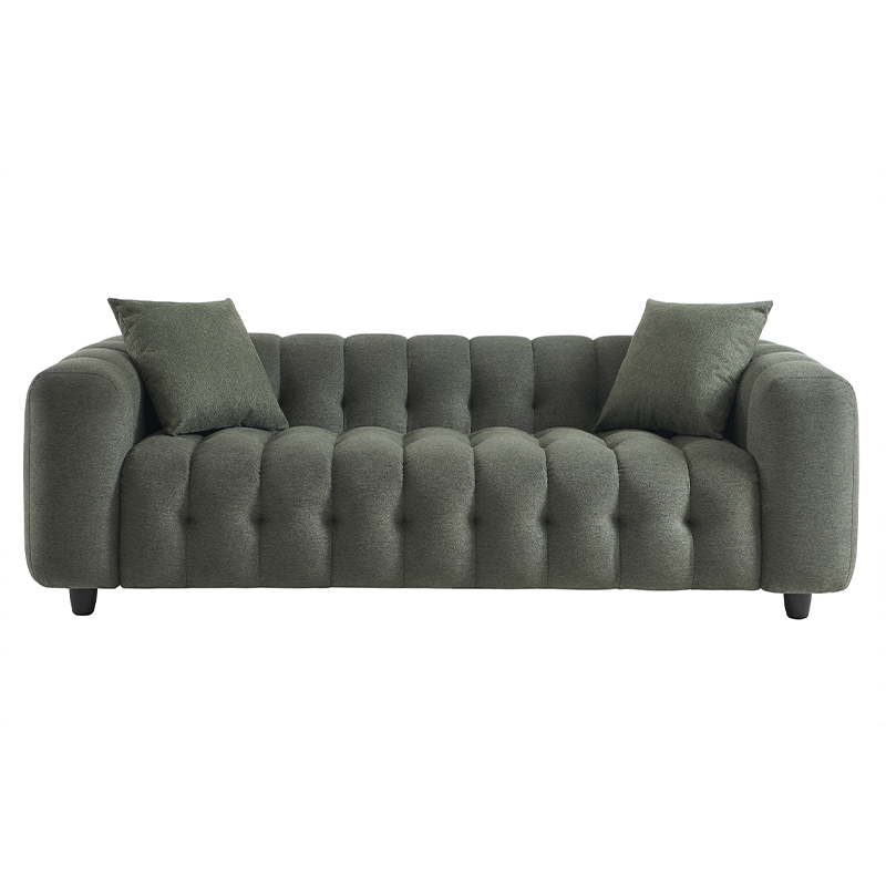 Avec son assise spacieuse et ses 2 coussins d'appoint, ce canapé 3 places invite à la détente. Son rembourrage moelleux assure un confort optimal, parfait pour vos moments de repos ou de convivialité.