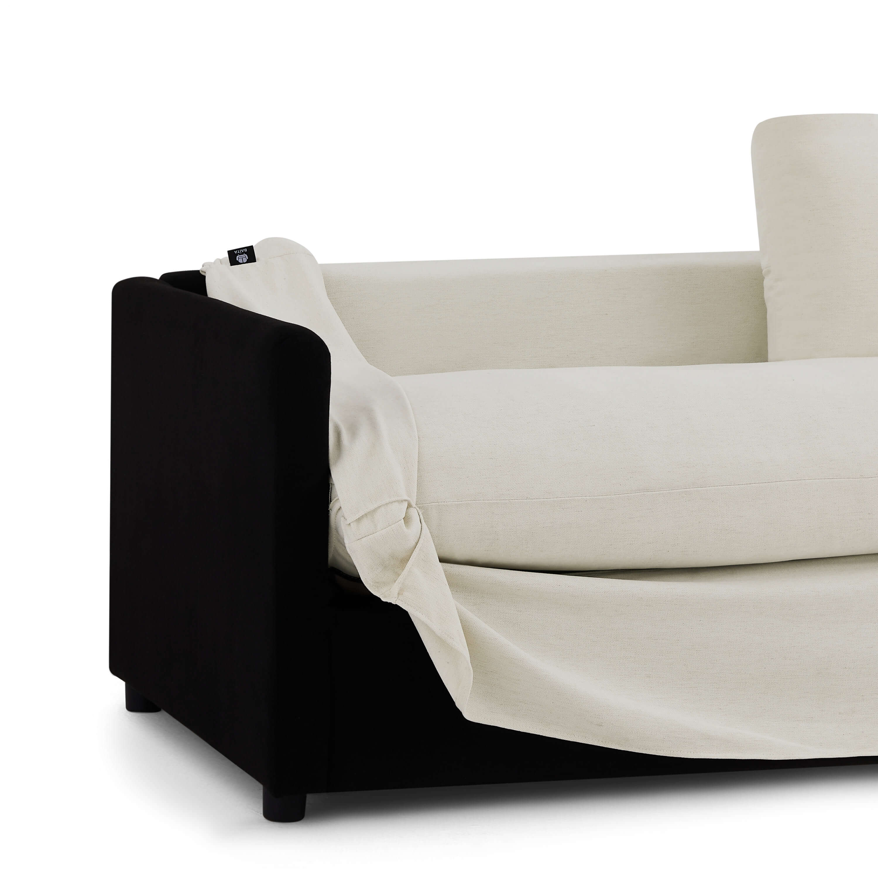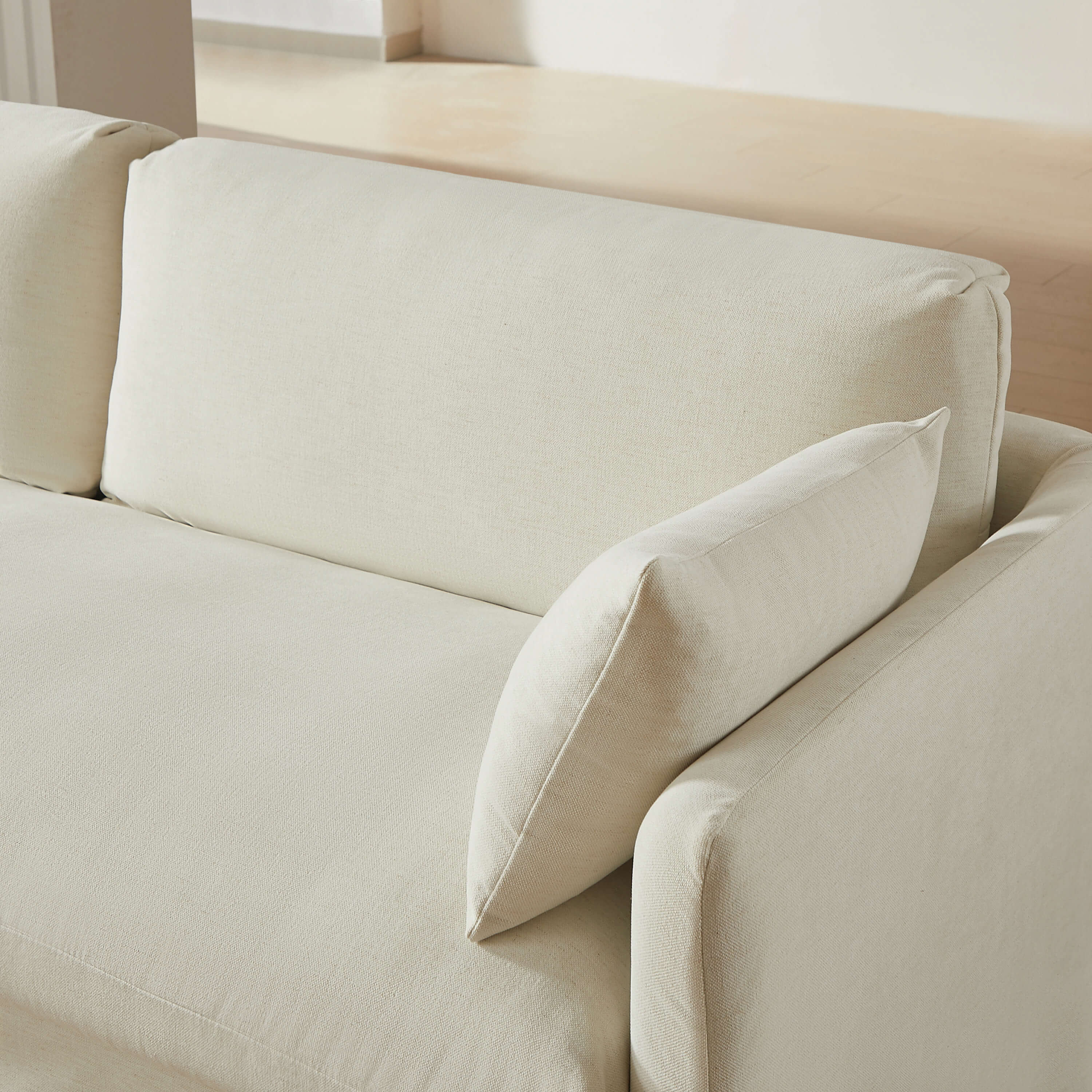Sa structure en bois d'eucalyptus et contreplaqué assure robustesse et stabilité. Le revêtement déhoussable, mélange de lin et polyester, facilite l'entretien tout en apportant douceur et résistance.