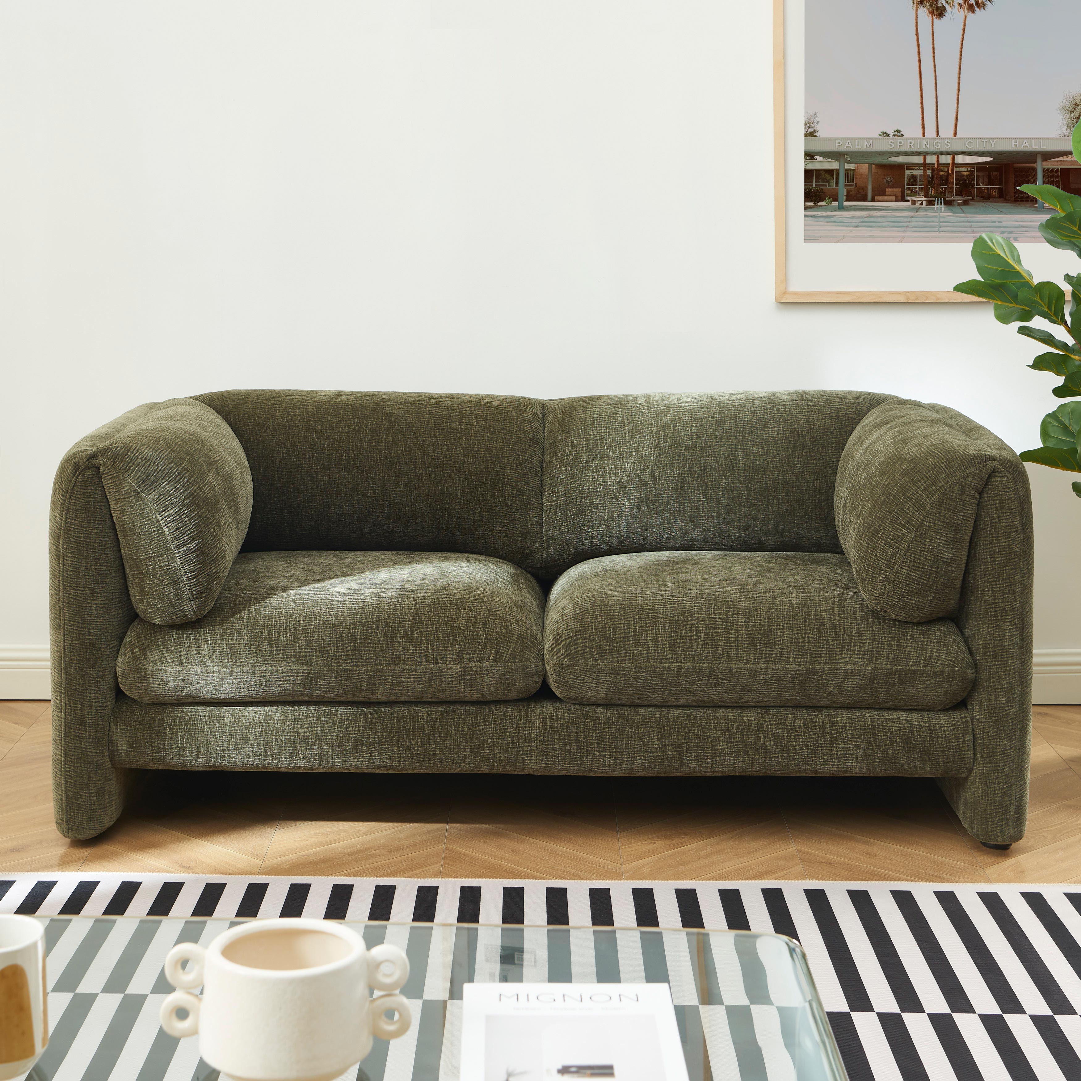 Le canapé droit fixe NIKKI se distingue par ses lignes arrondies et son allure moderne. Son revêtement en velours texturé 100% polyester offre un toucher agréable au quotidien. Son format compact le rend parfaitement adapté aux petits espaces comme aux salons plus spacieux.