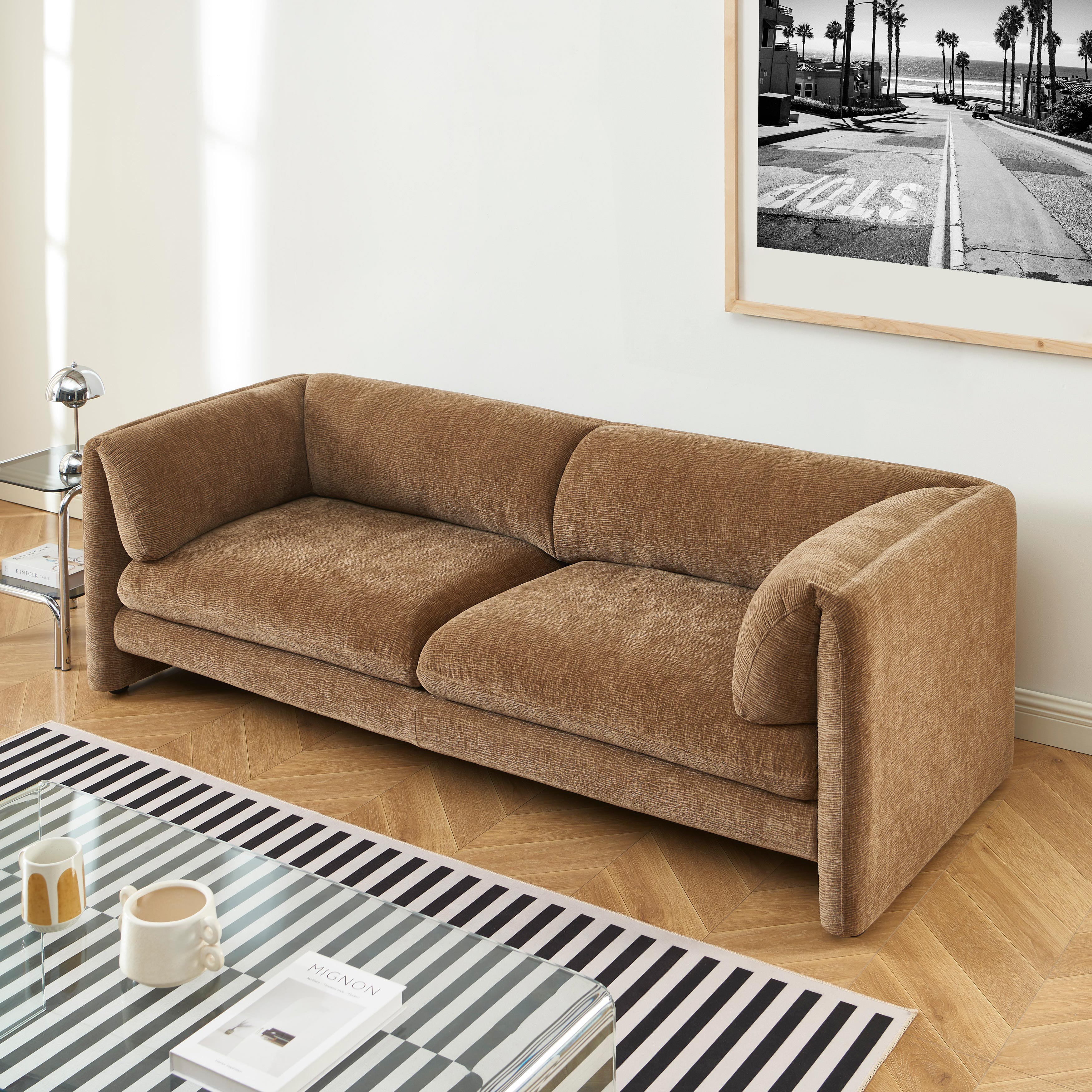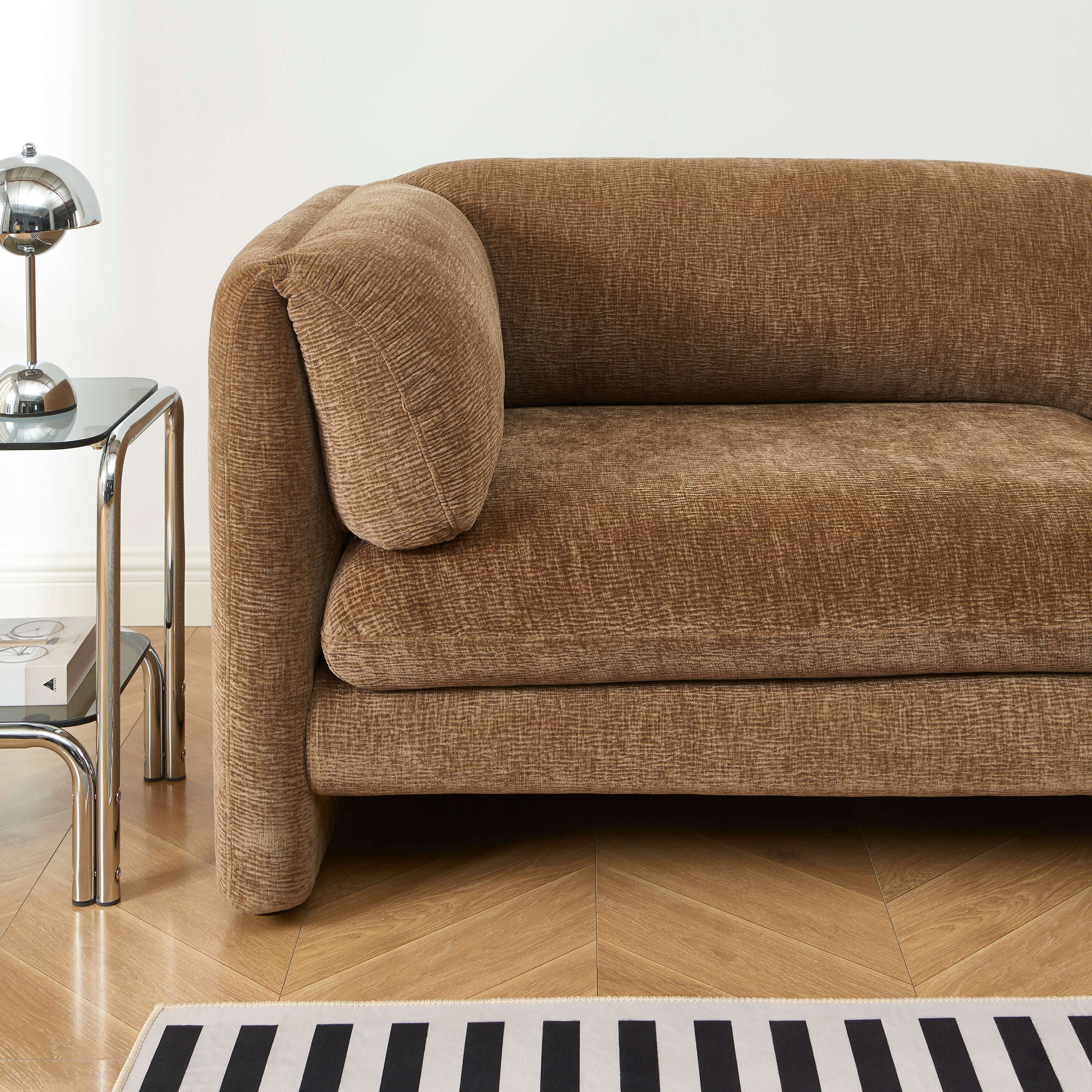 Canapé droit fixe NIKKI 3 places velours texturé marron