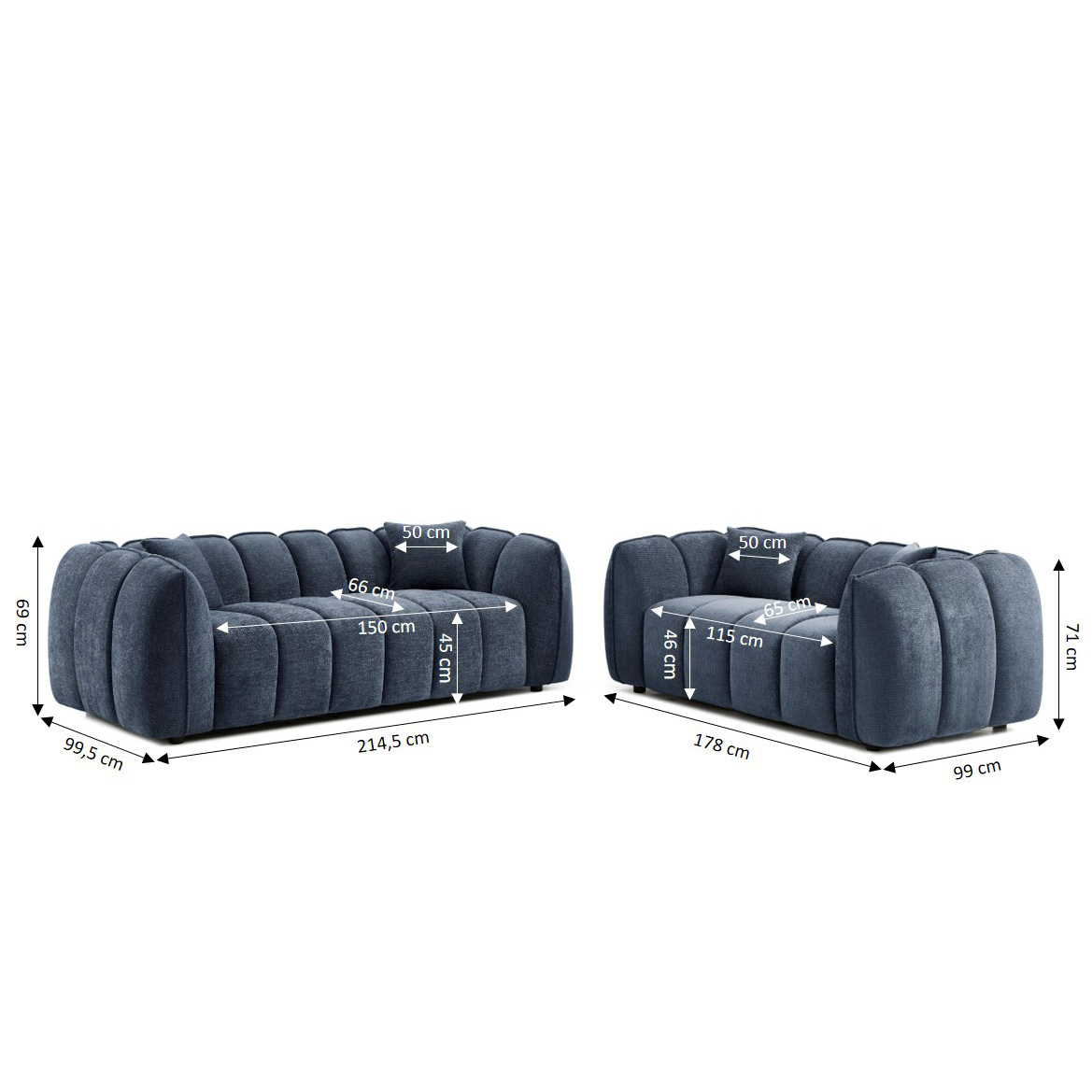 - Canapé 3 places : L214.5 x P99.5 x H69 - Canapé 2 places : L178 x P99 x H71