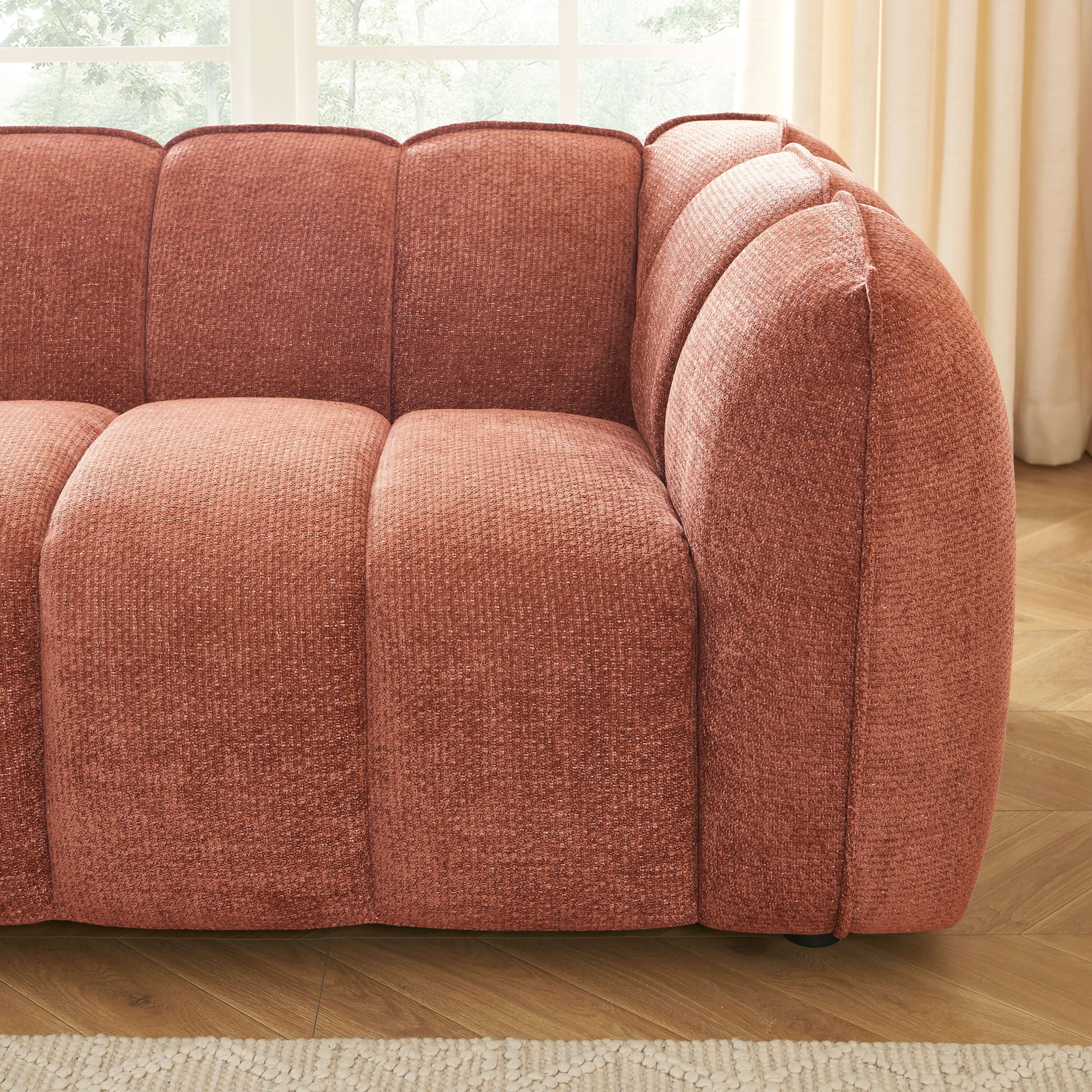 Canapé droit MATILDA 2 places tissu chenille rouge brique