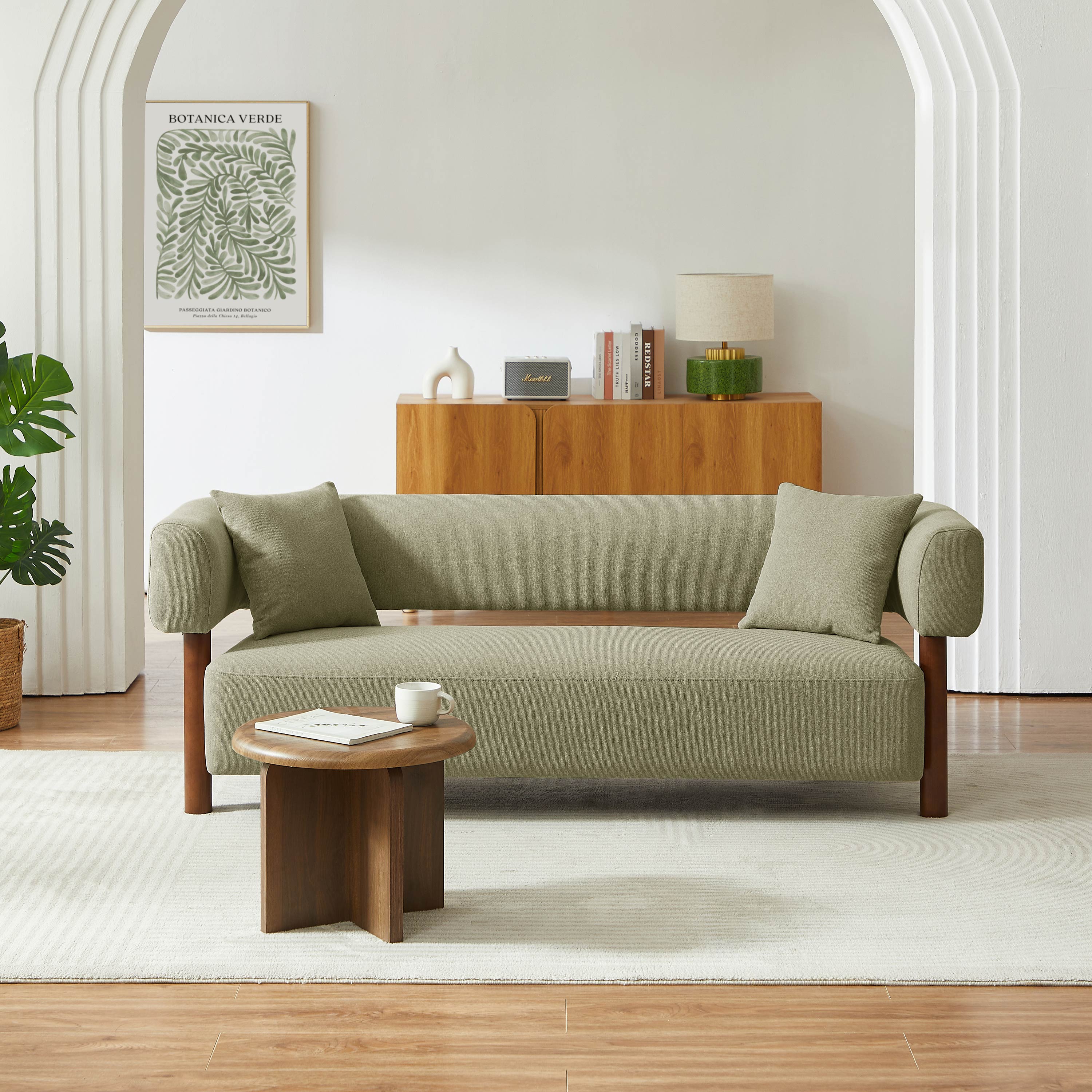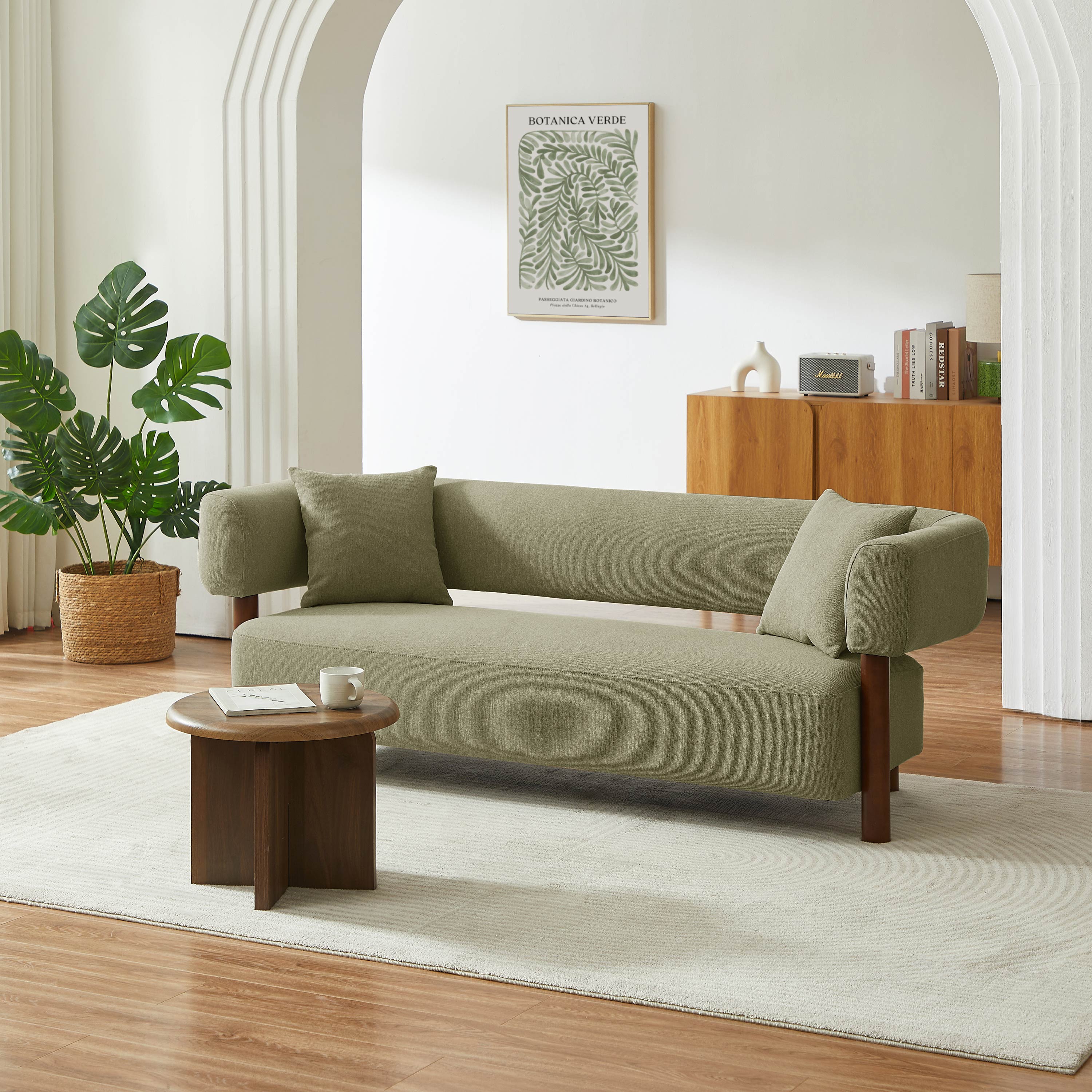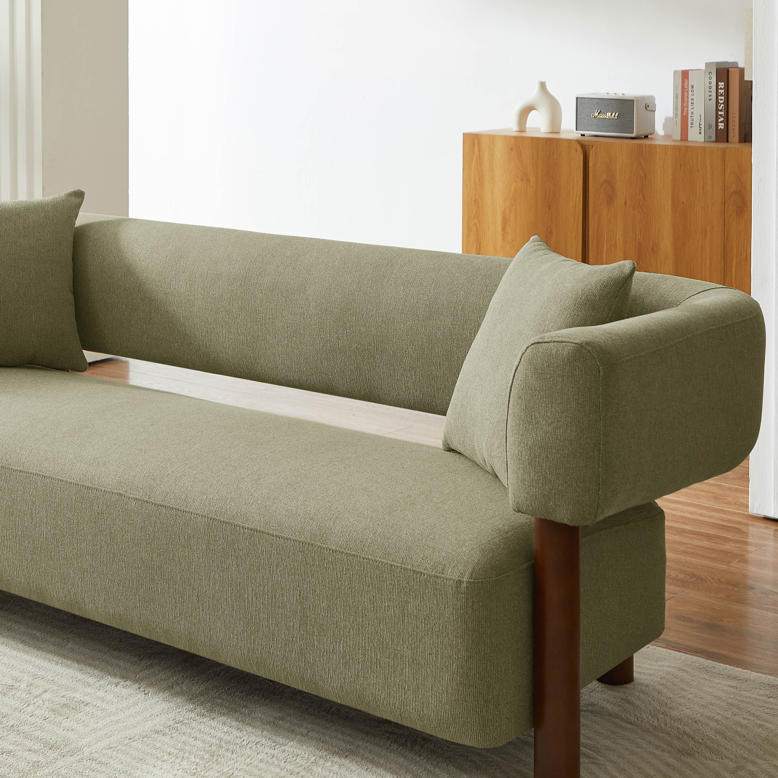 équilibréLe canapé droit BRAZZA 3 places combine design moderne et compact avec un tissu élégant. Ses pieds en bois et ses 2 coussins décoratifs inclus apporteront confort et style à votre salon.