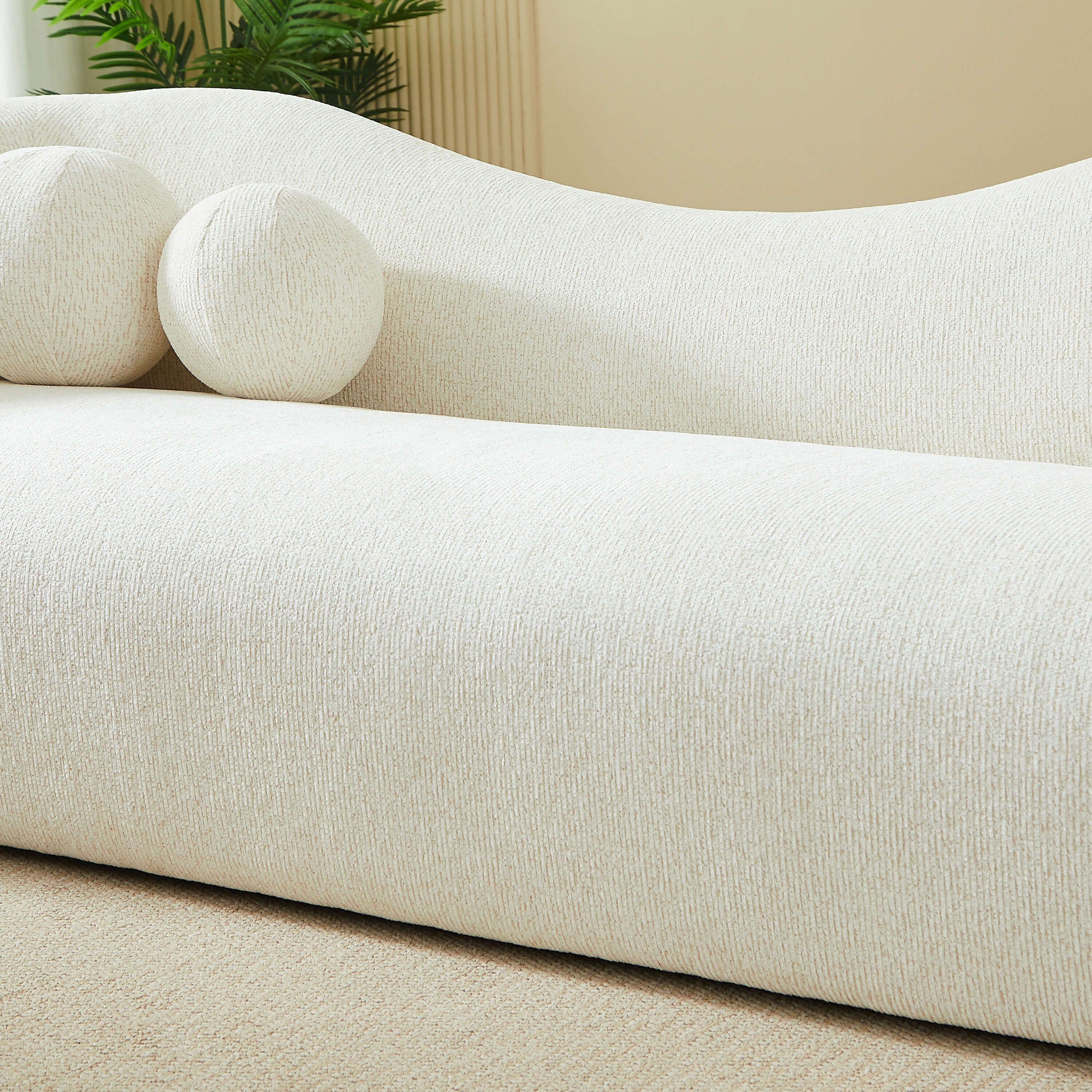 - Deux coussins boules inclus apportant une touche design