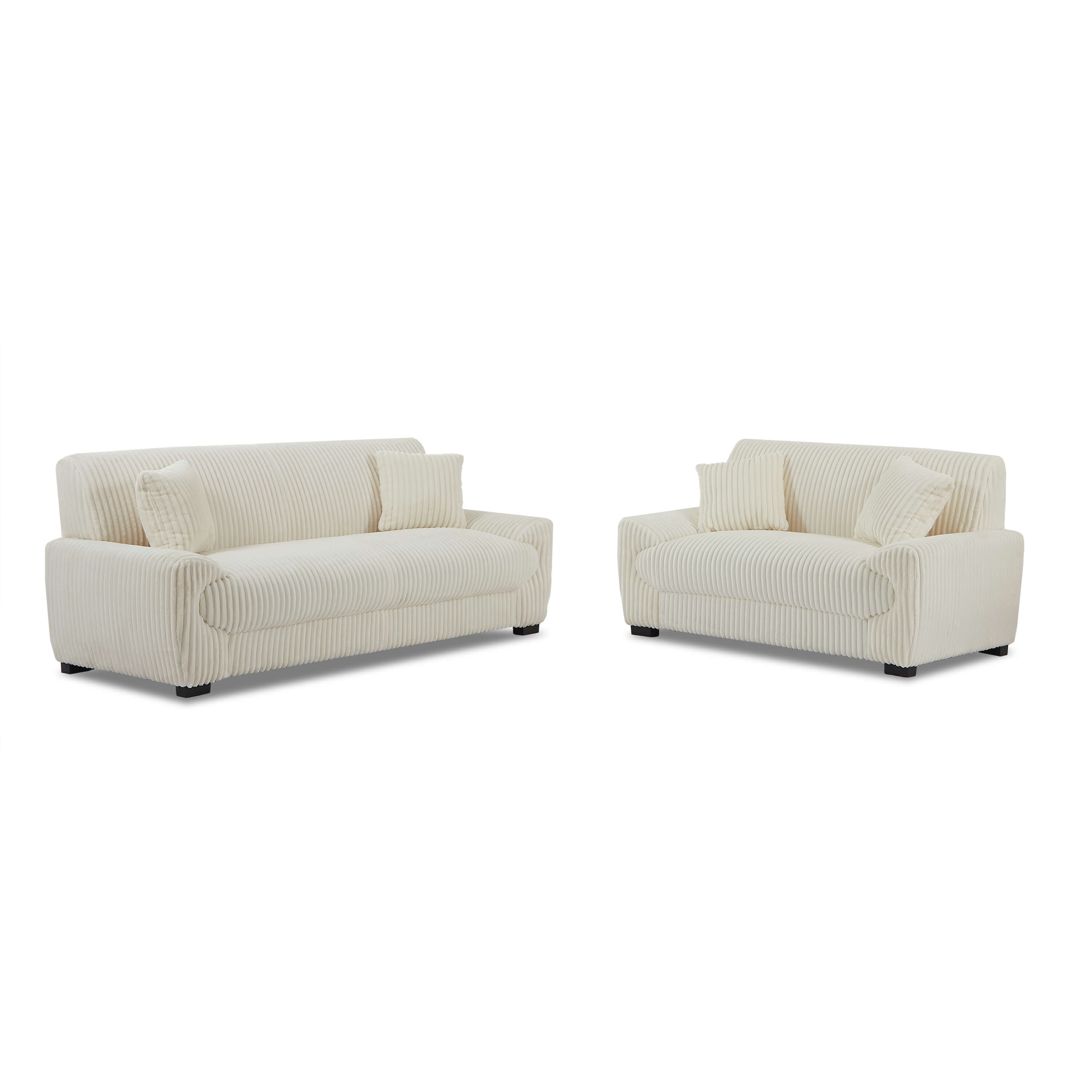 Ensemble canapés droits fixes 3+2 places ADEA velours côtelé beige