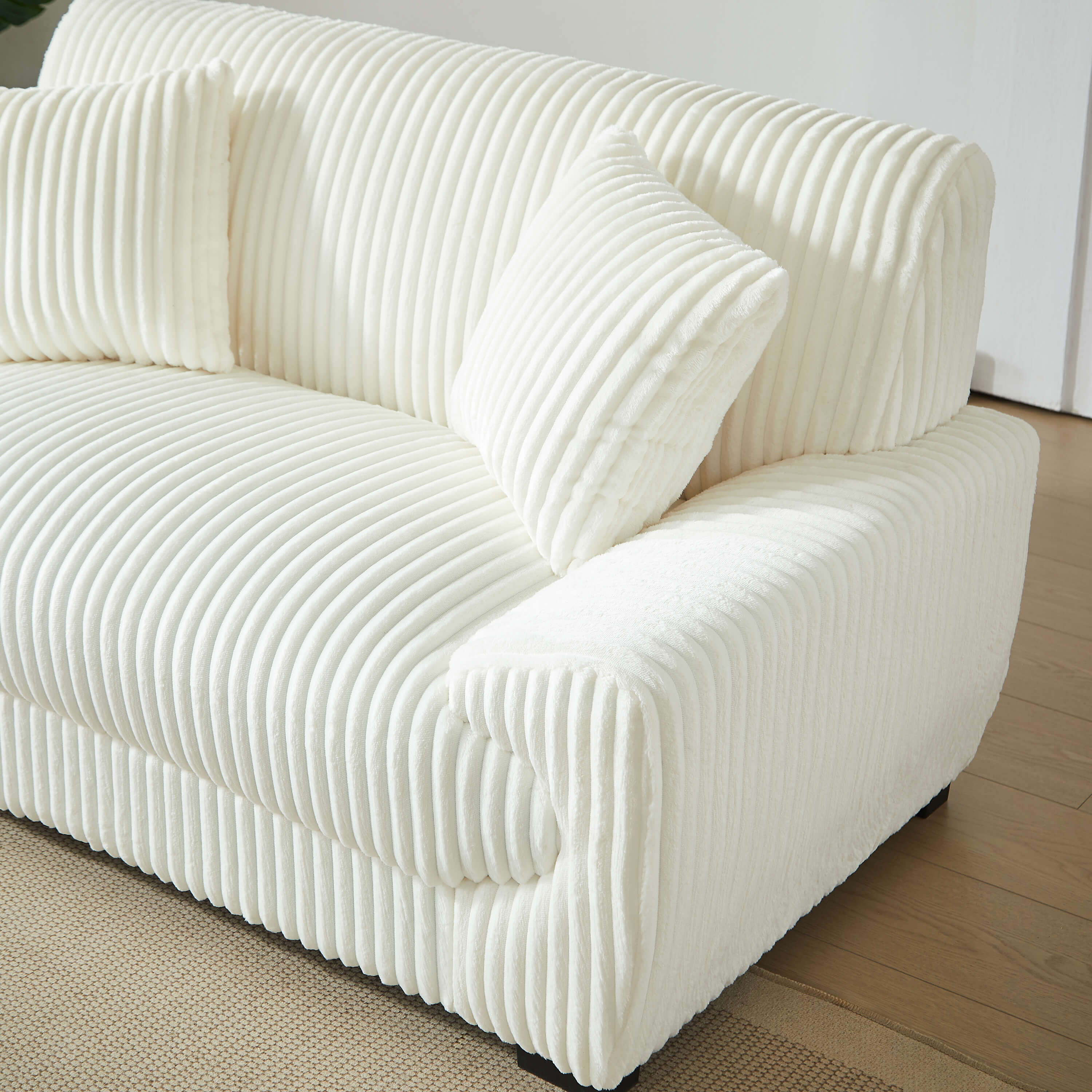 Habillé d’un velours côtelé doux au toucher, l’ensemble ADEA allie esthétique et confort. Les pieds noirs discrets soulignent son look contemporain, tandis que les coussins décoratifs inclus renforcent son esprit chaleureux. Facile à intégrer, cet ensemble s’adapte aisément à différents styles de décoration, du plus moderne au plus cocooning.