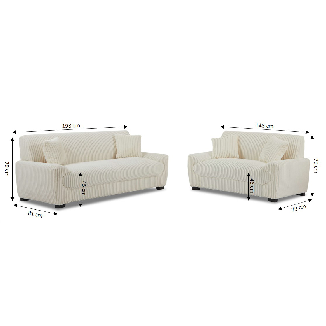 - Dimensions du canapé 2 places : L148 x P79 x H79 cm
