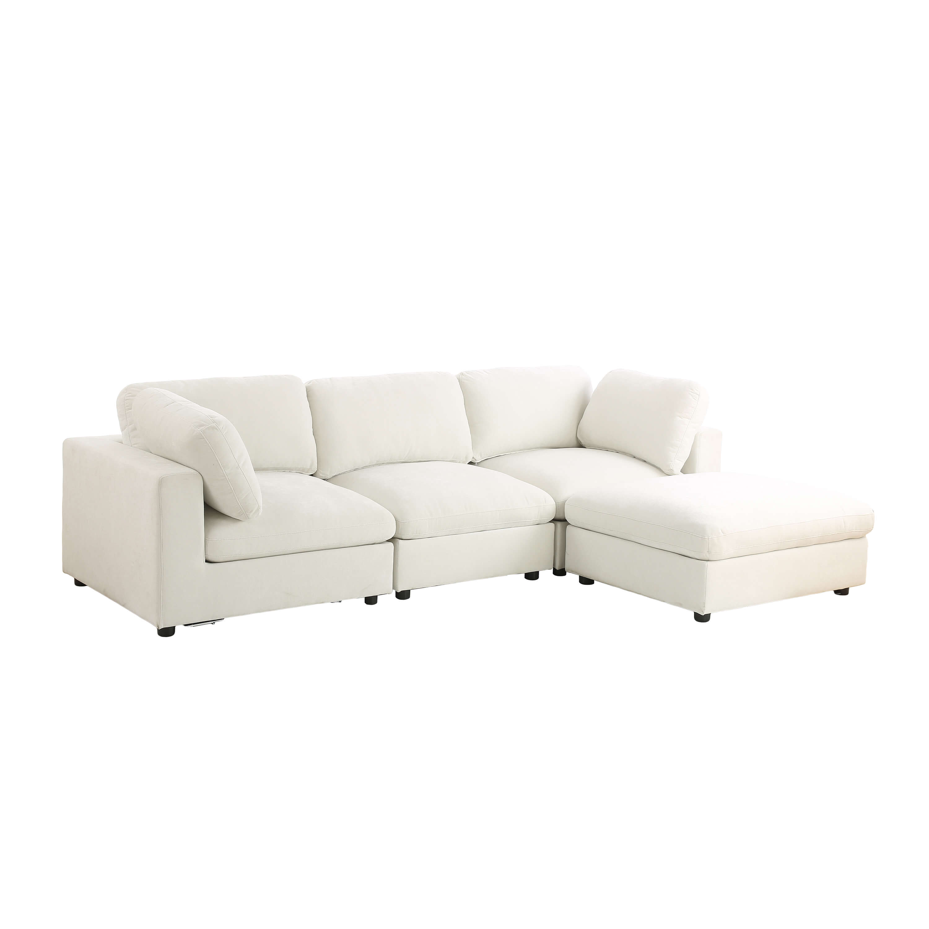 Composé de 4 modules distincts, dont un pouf indépendant, le canapé MIZAR s'adapte facilement à vos envies d'aménagement. Le pouf peut être déplacé selon vos besoins pour créer un angle à gauche ou à droite, ou être utilisé séparément en assise d'appoint. Cette modularité permet de configurer votre espace de manière personnalisée et évolutive.