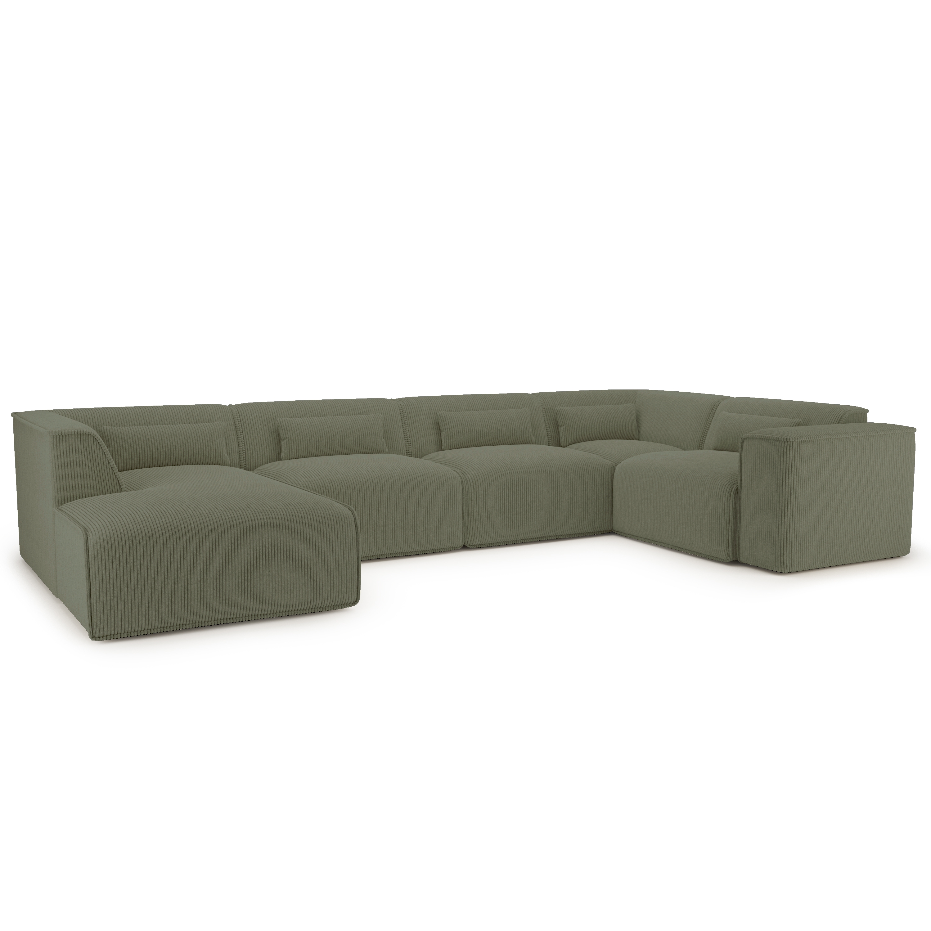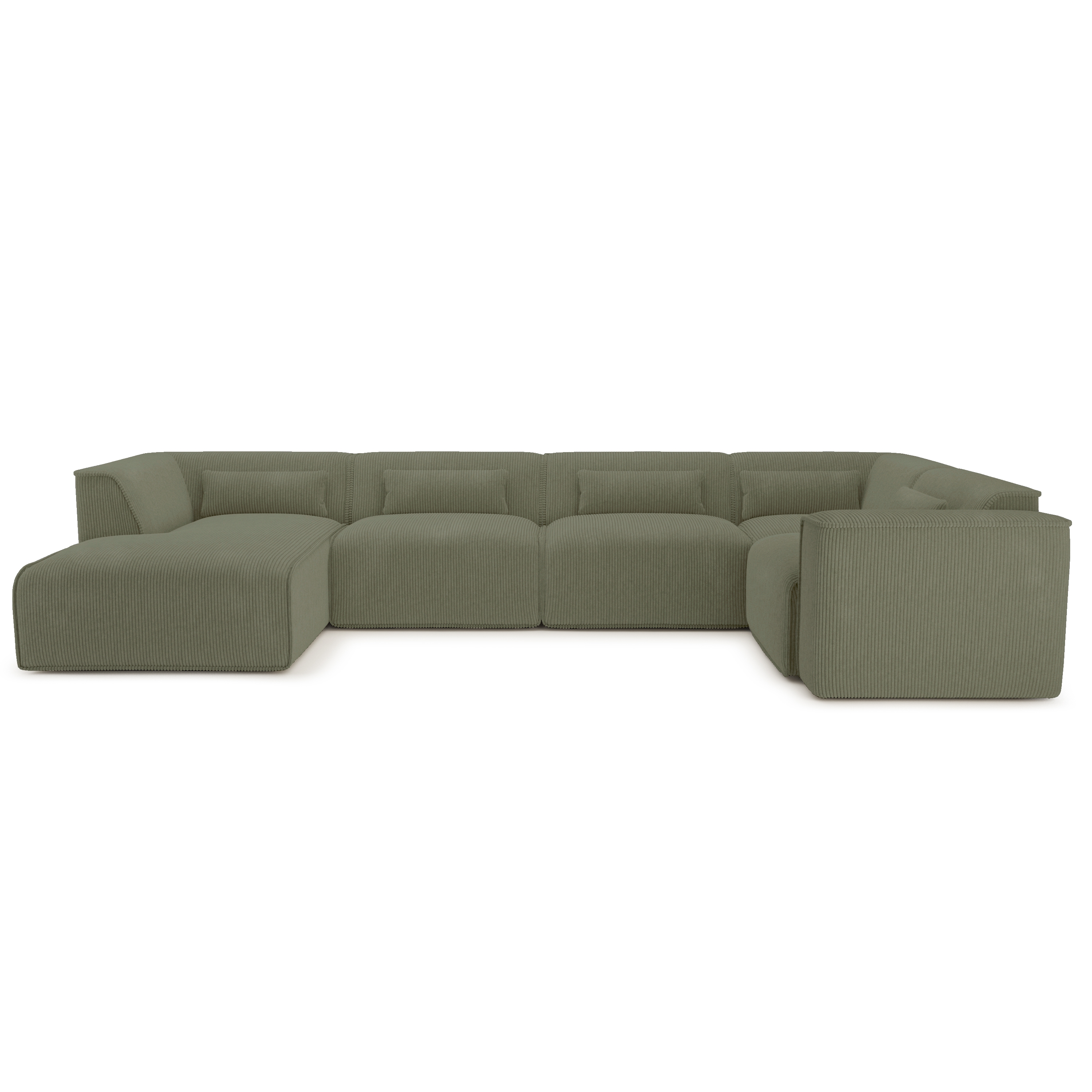 Canapé panoramique fixe NUNA 7 places chaise gauche velours côtelé vert