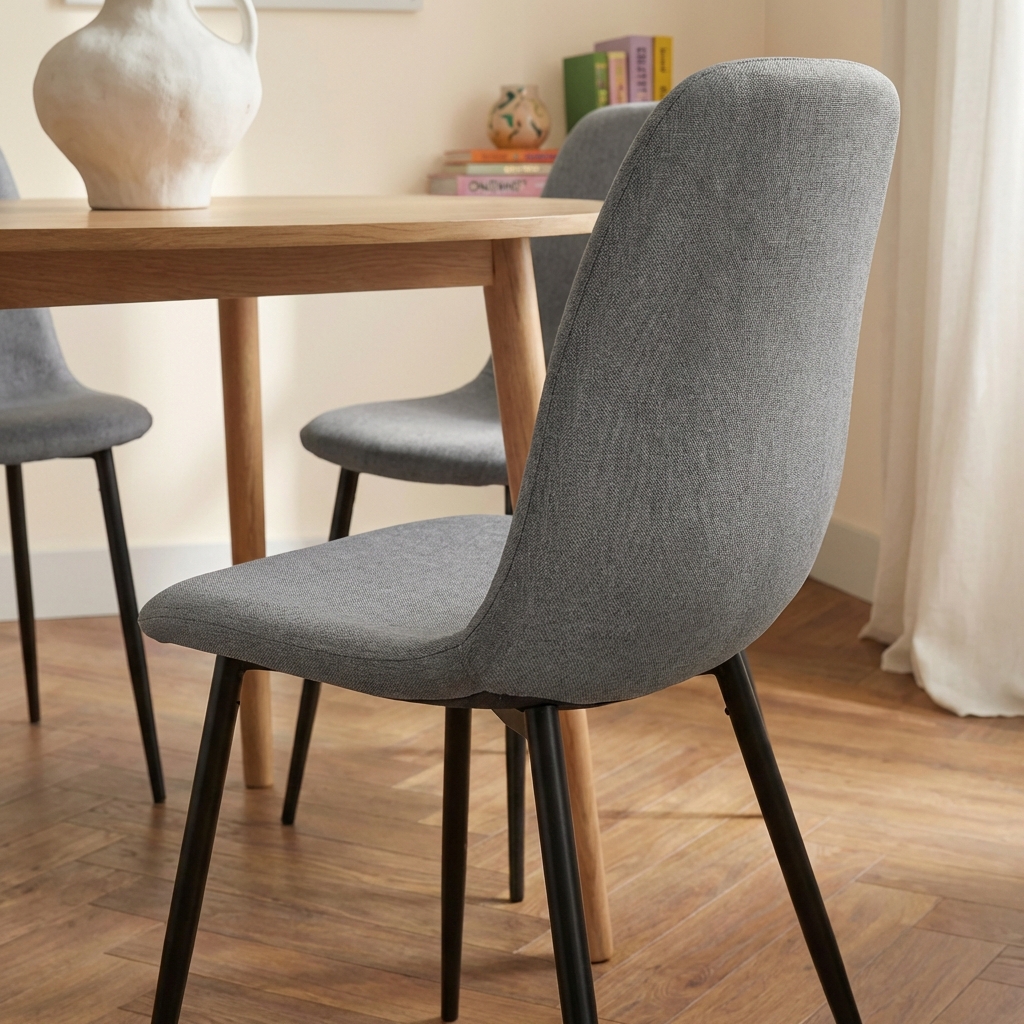 Lot de 4 chaises ESTELLE tissu gris clair pieds métal noir