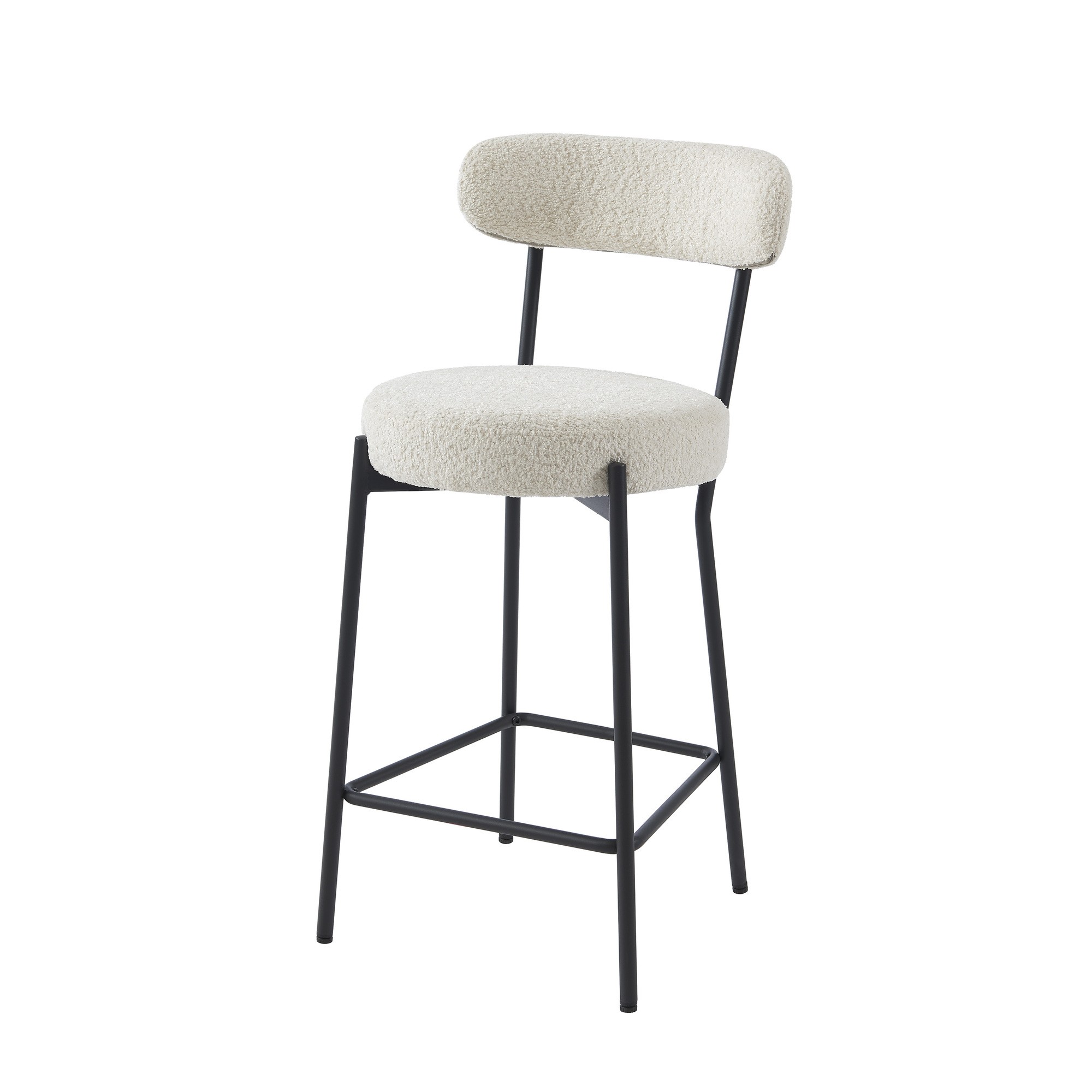Son revêtements en tissu bouclette apportera un coté chaleureux et chic à votre salle à manger ou votre cuisine. Profitez également de son repose pieds qui apportera davantage de confort lors de vos moments de télétravail, vos pauses déjeuner ou tout simplement vos moments entre amis.