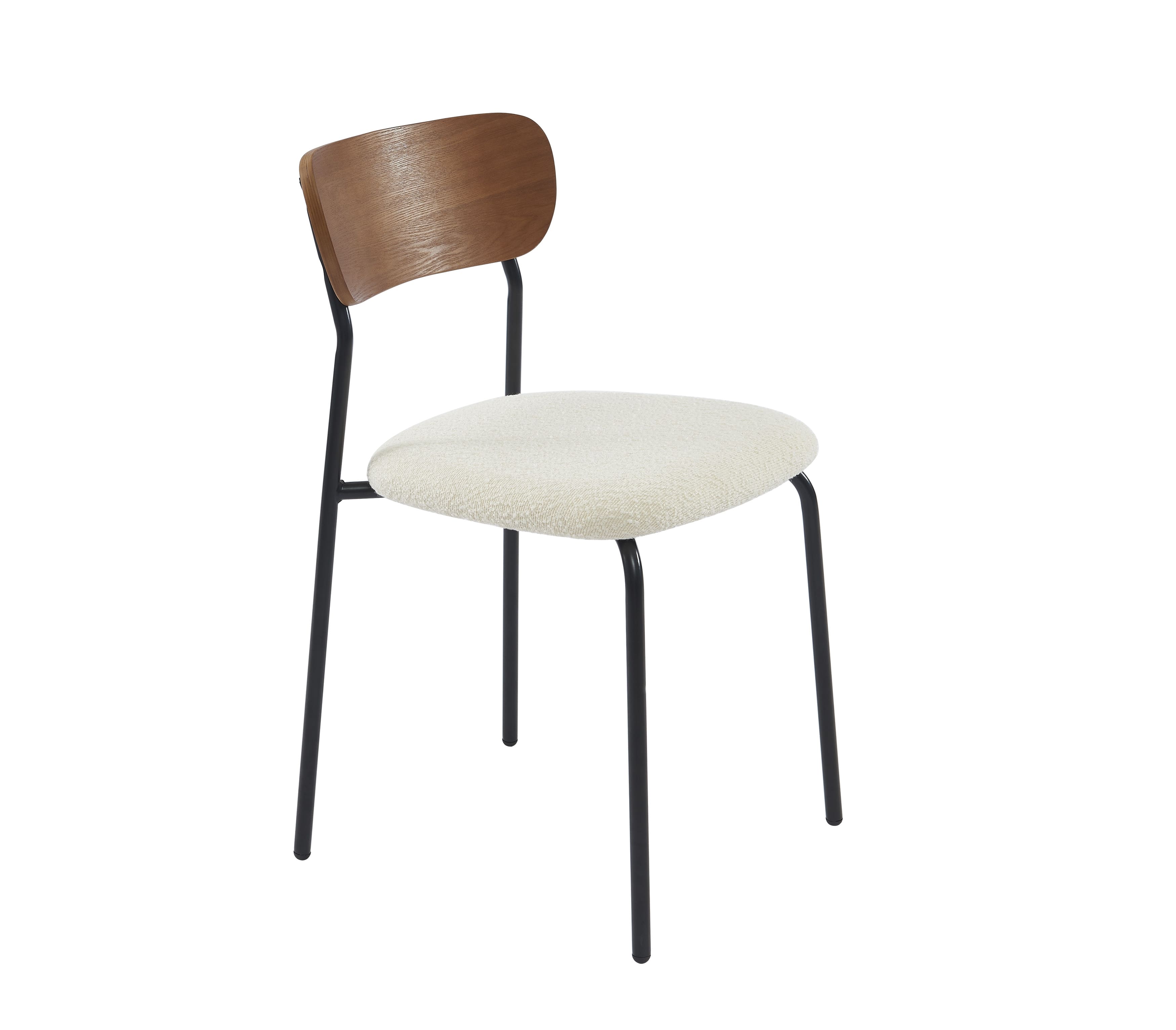 Par ailleurs, l'assise des chaises FRIDA est disponible en plusieurs options de tissus et de coloris. Vous pouvez donc choisir entre le tissu bouclette écru, qui évoque une atmosphère douce et accueillante, ou le velours côtelé blanc, noir ou jaune moutarde, pour une apparence plus sophistiquée.