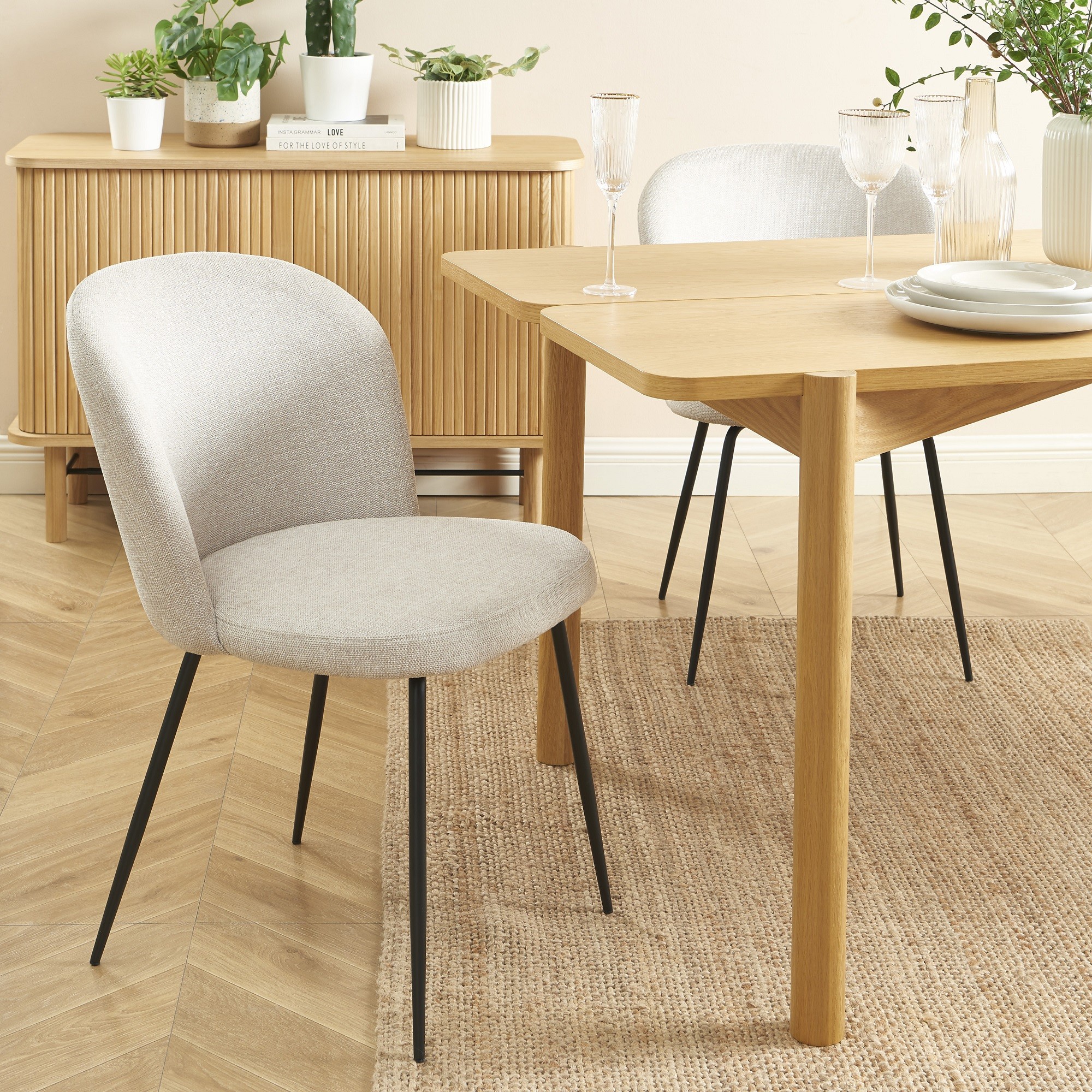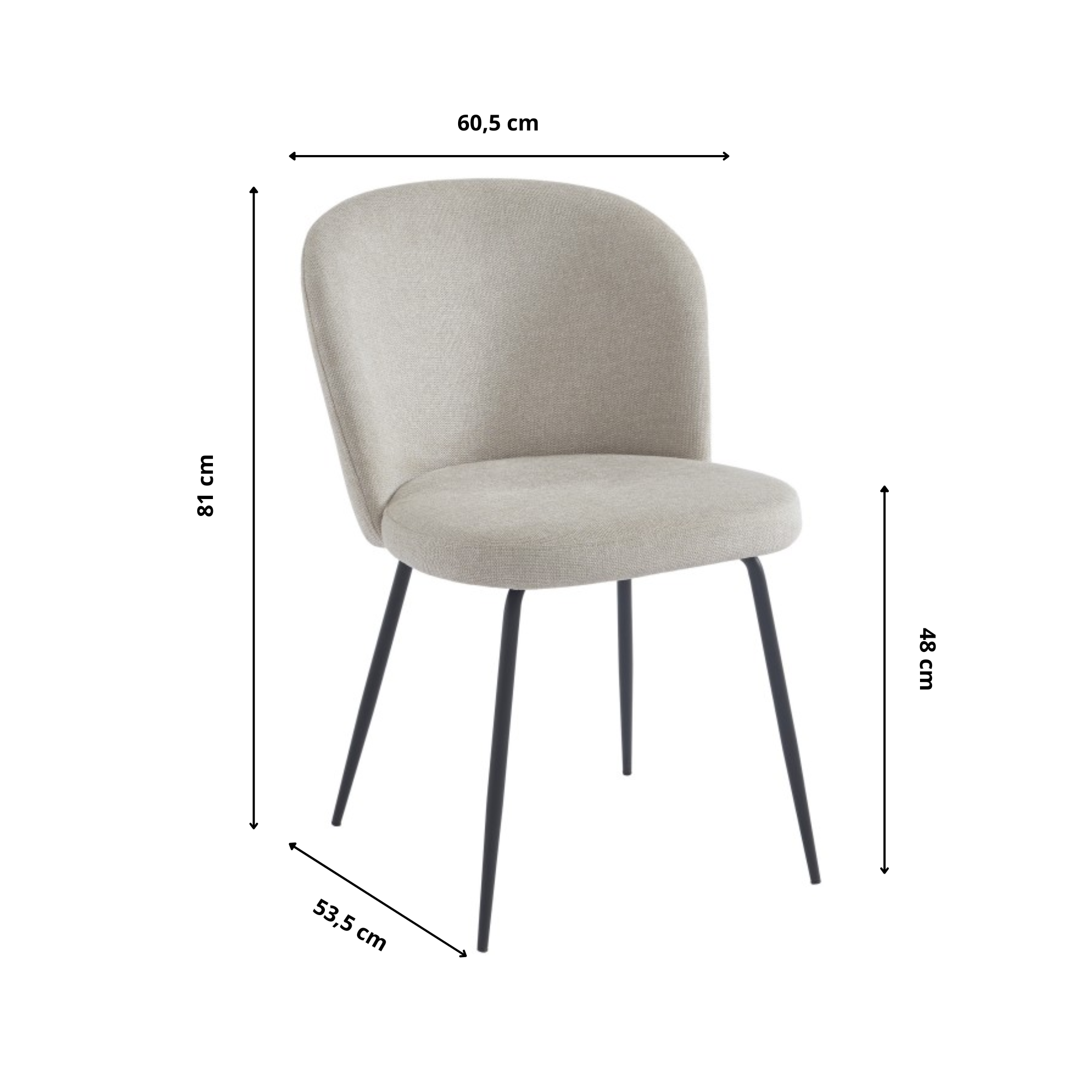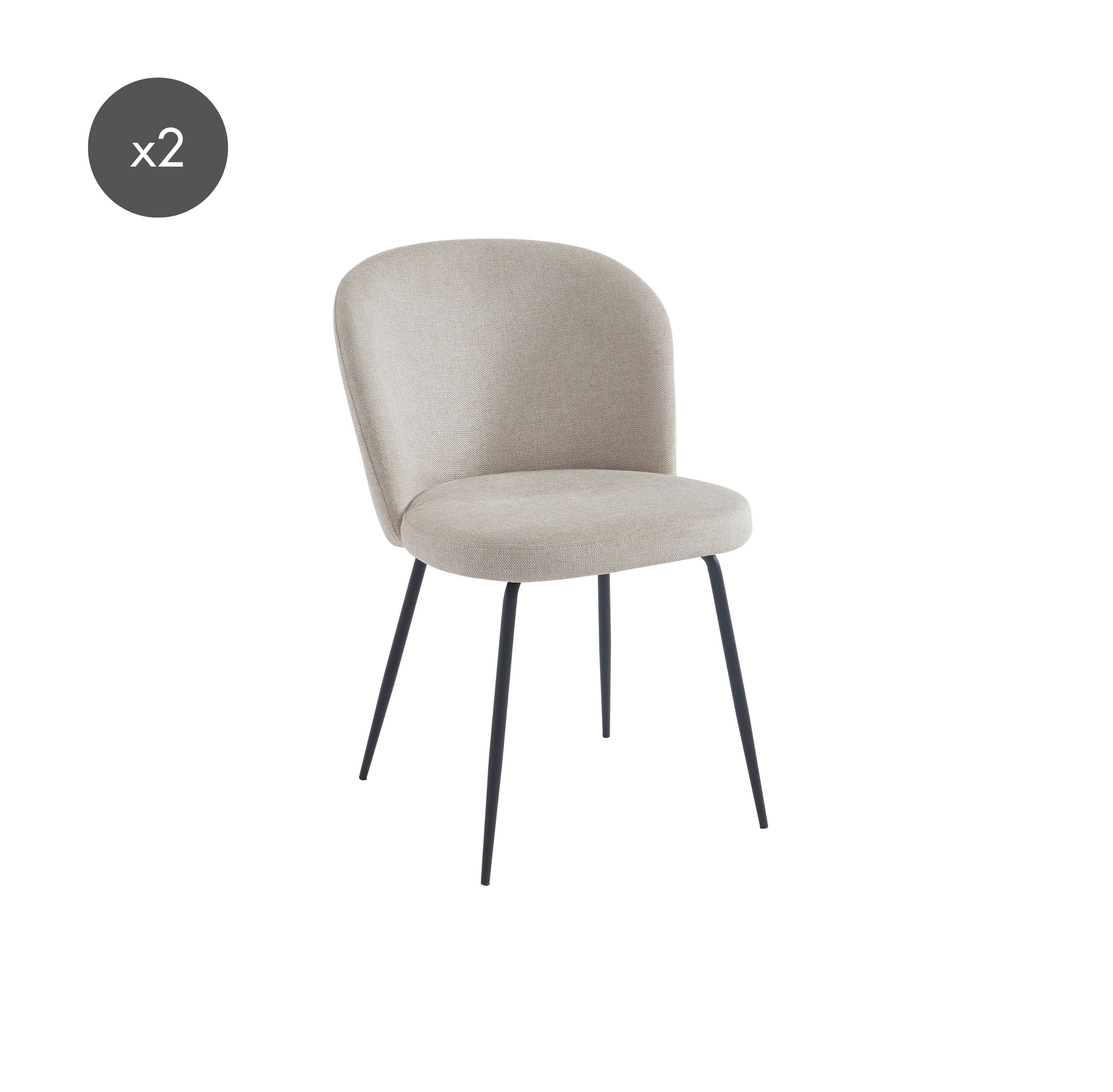Lot de 2 chaises RITA tissu chiné beige pieds métal noir