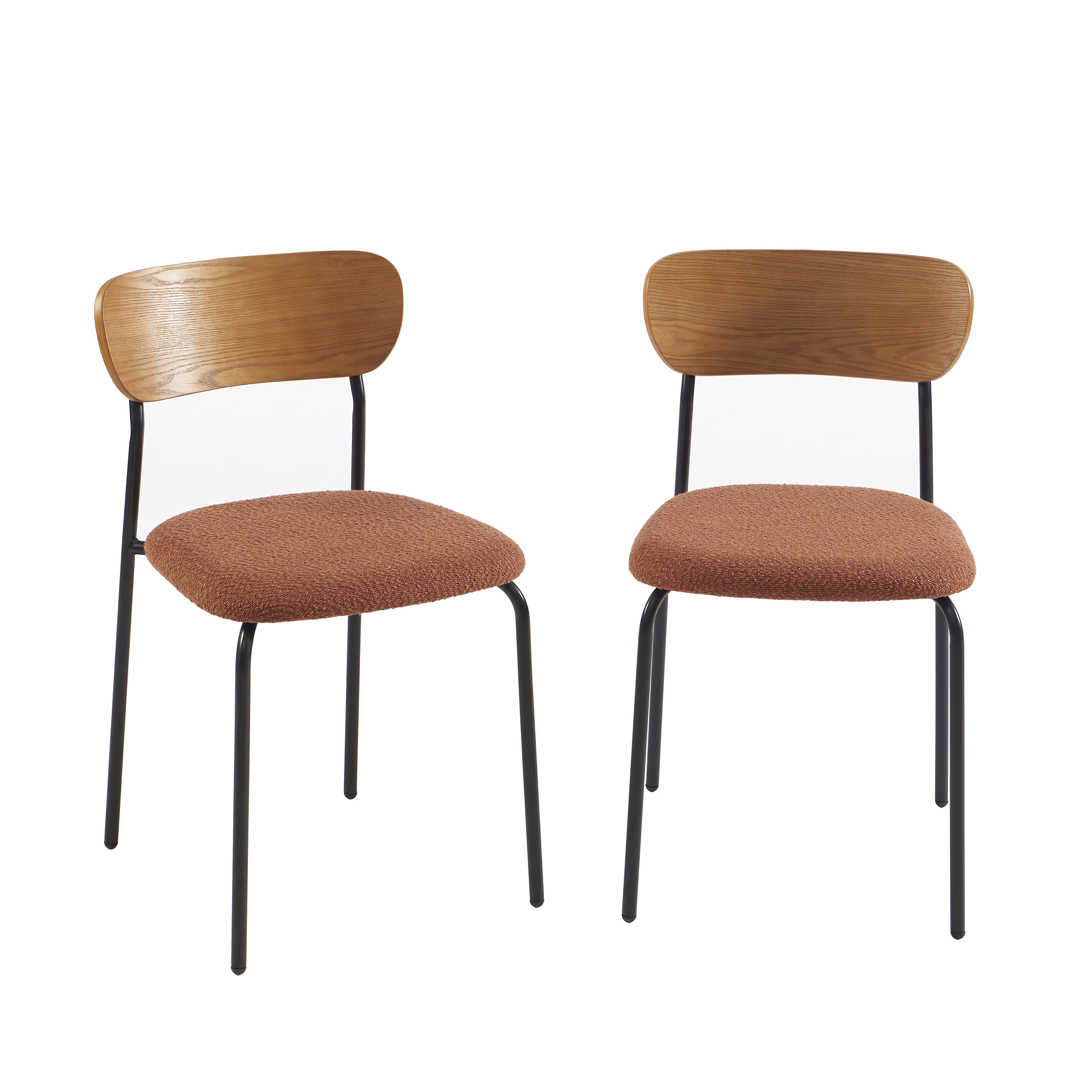 Lot de 2 chaises FRIDA tissu bouclette terracotta pieds métal noir