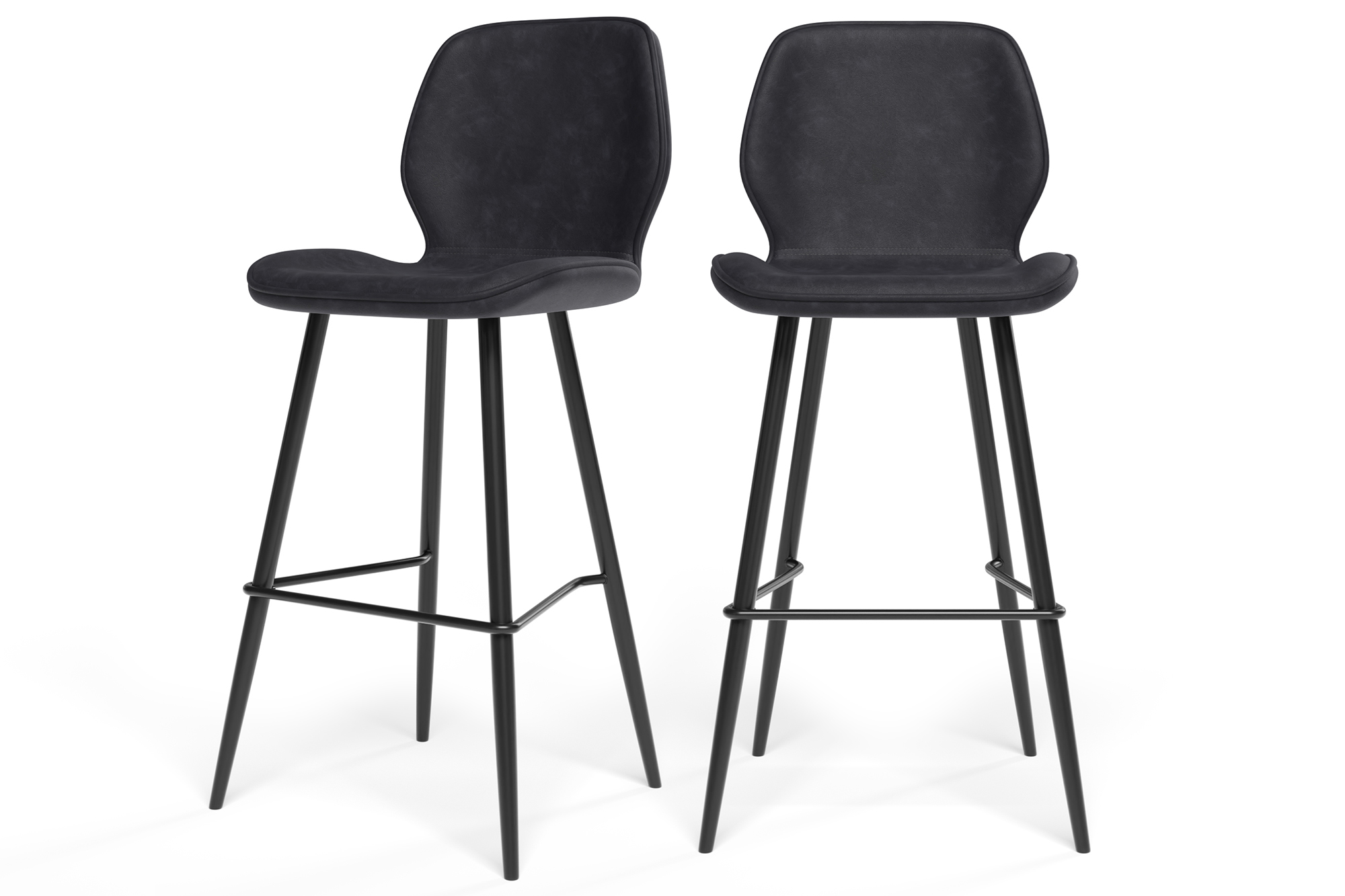 Lot de 2 tabourets de bar ETHAN en PU noir H68 cm