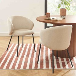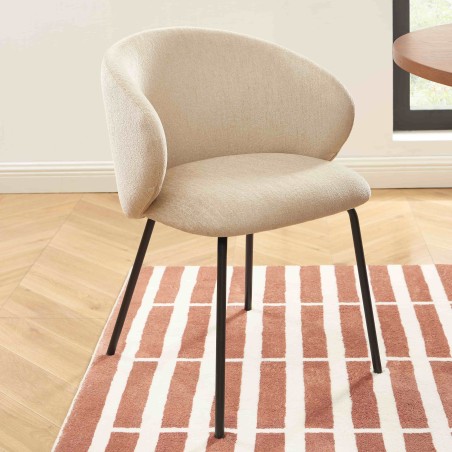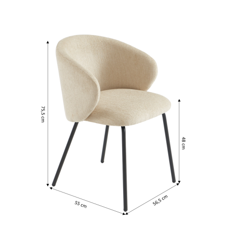Dotées de 4 pieds en métal noir avec patins en plastique pour protéger vos sols, ces chaises allient robustesse et stabilité. Chaque chaise supporte jusqu’à 100 kg, vous offrant une assise fiable et durable au quotidien. Le contraste entre le tissu chenille beige et les pieds noirs apporte une note élégante et moderne qui sublimera votre intérieur.