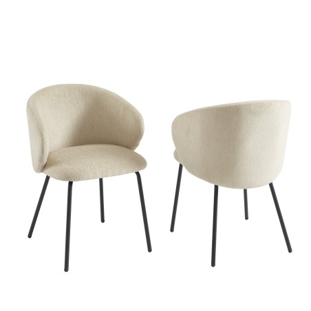 Vous souhaitez apporter une touche moderne et élégante à votre intérieur ? Optez pour le lot de 2 chaises CASSIE. Avec leur revêtement en tissu chenille beige, ces chaises combinent douceur et style, pour un rendu à la fois chaleureux et tendance. Le tissu chenille, en plus d'être agréable au toucher, il s'intègre parfaitement dans une décoration contemporaine, scandinave ou minimaliste.