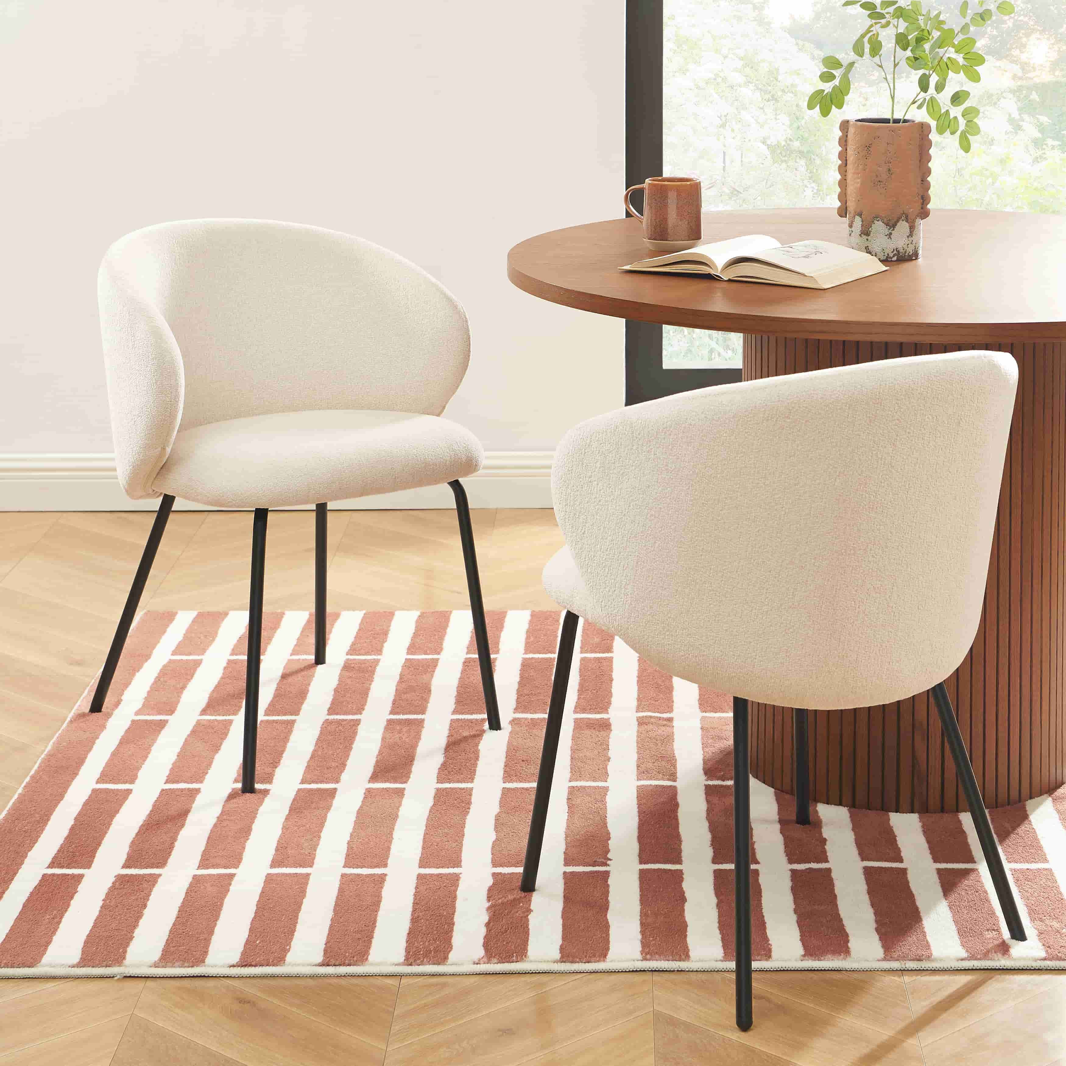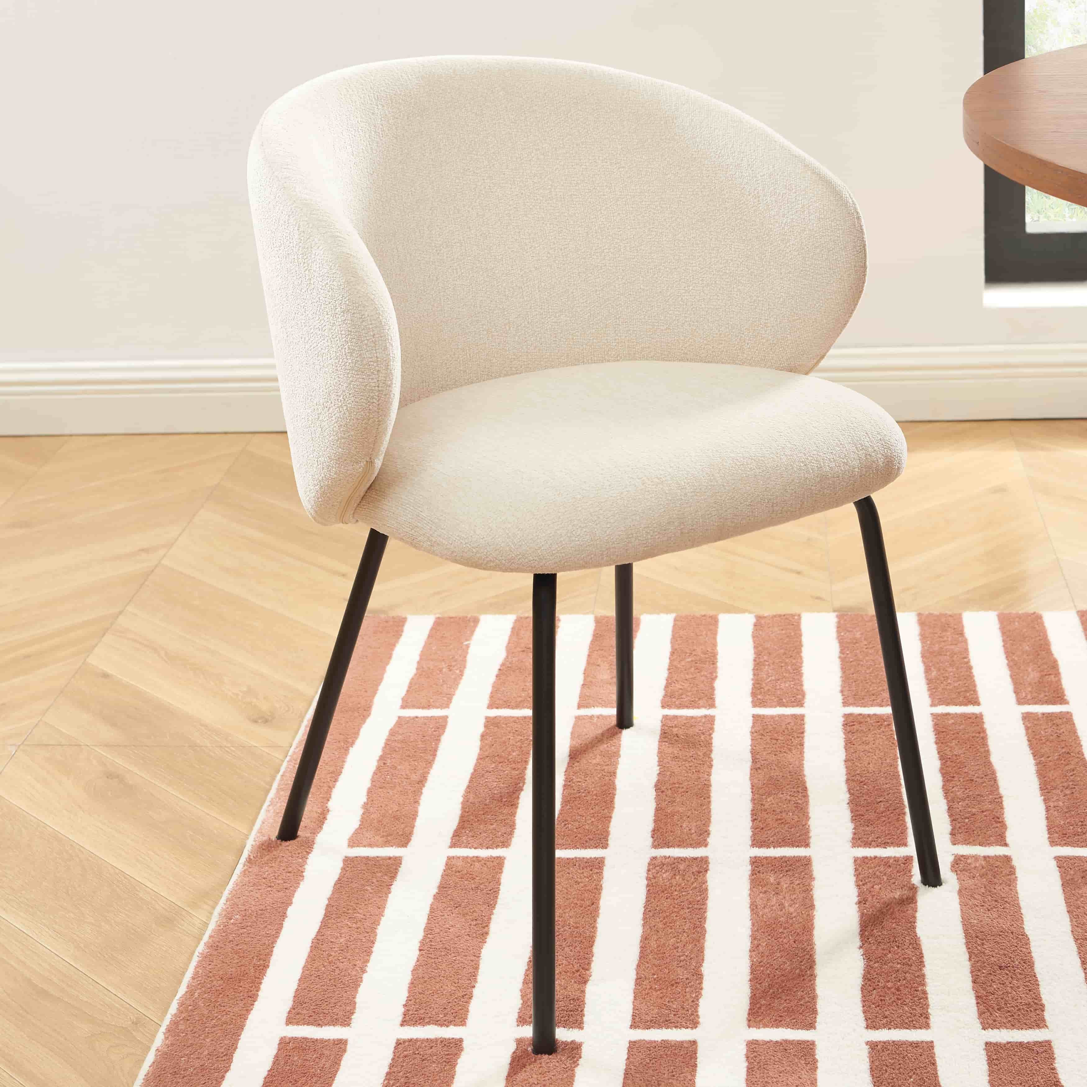 Dotées de 4 pieds en métal noir avec patins en plastique pour protéger vos sols, ces chaises allient robustesse et stabilité. Chaque chaise supporte jusqu'à 100 kg, vous offrant une assise fiable et durable au quotidien. Le contraste entre le tissu chenille beige et les pieds noirs apporte une note élégante et moderne qui sublimera votre intérieur.