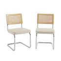 Lot de 2 chaises ELLA cannage et tissu marron pieds métal chromé