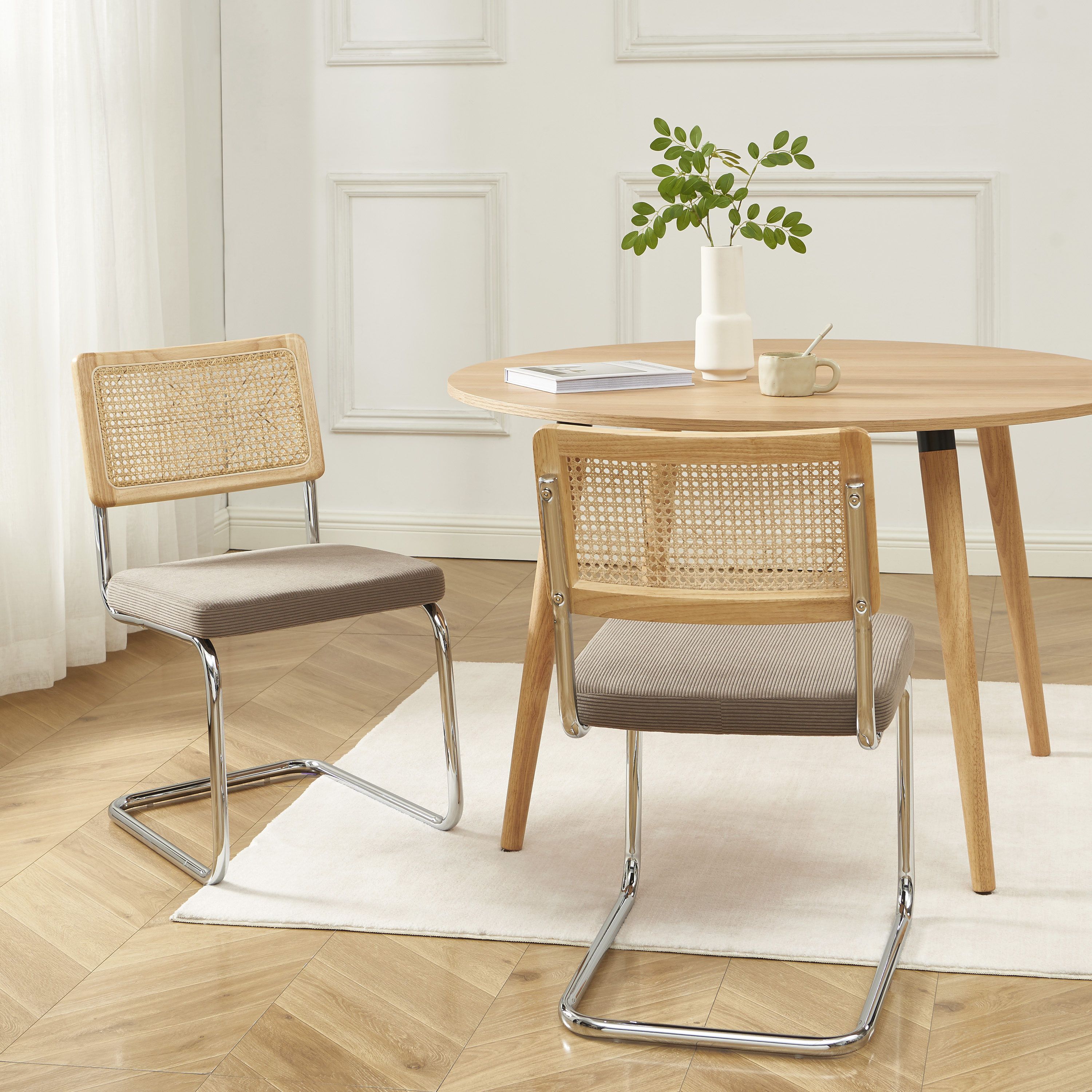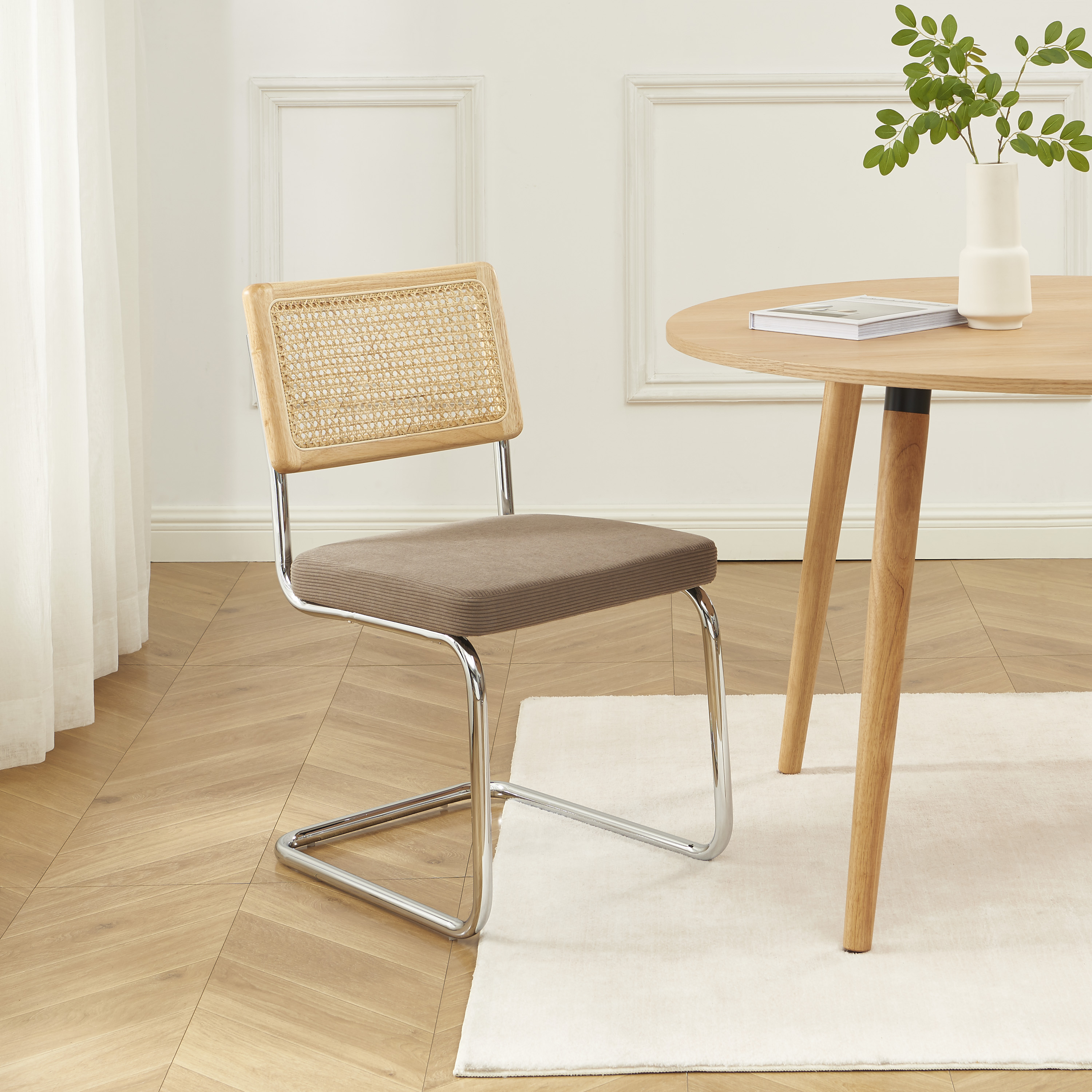 Lot de 2 chaises ELLA cannage et velours côtelé grège pieds métal chromé