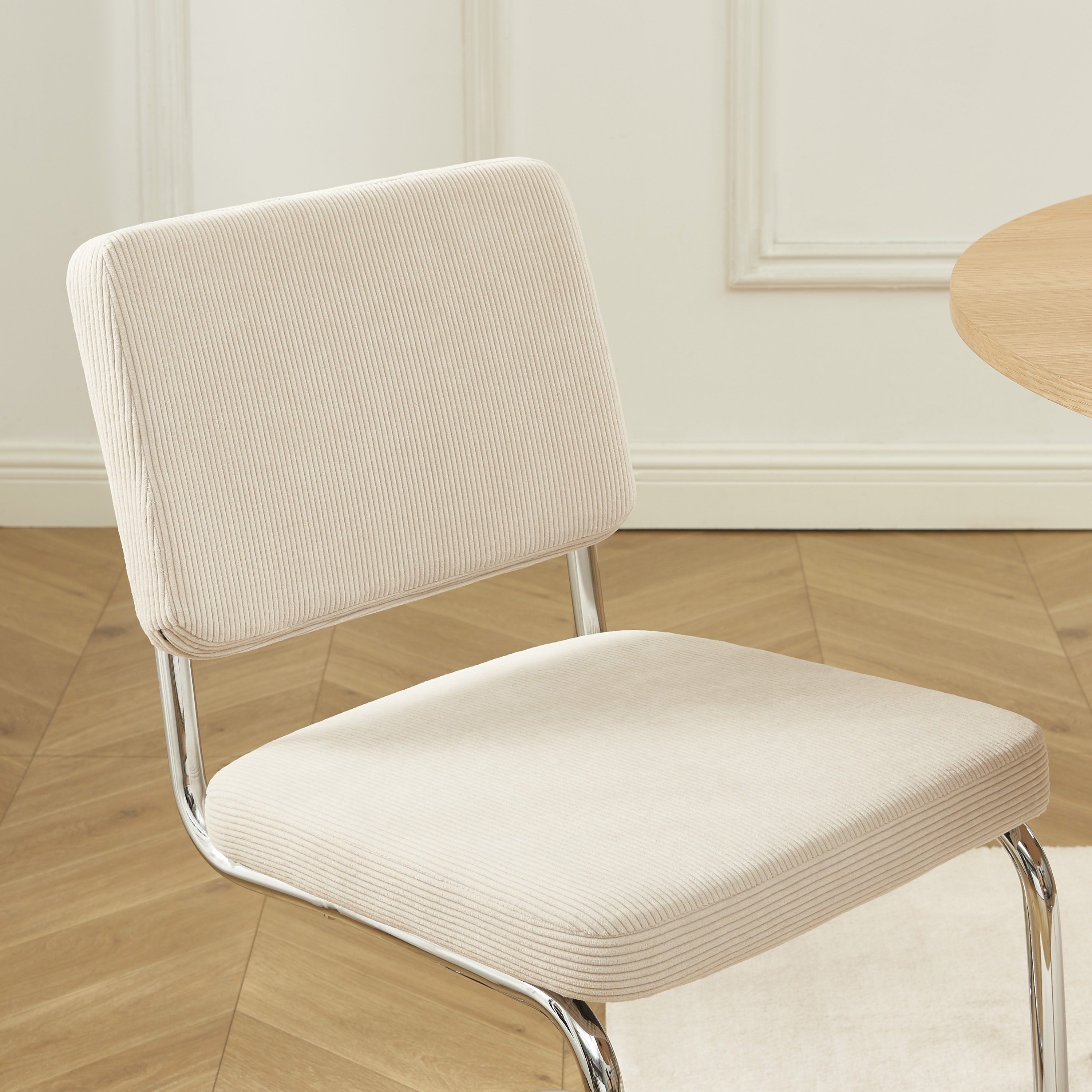 Lot de 2 chaises JACK velours côtelé écru pieds métal chromé