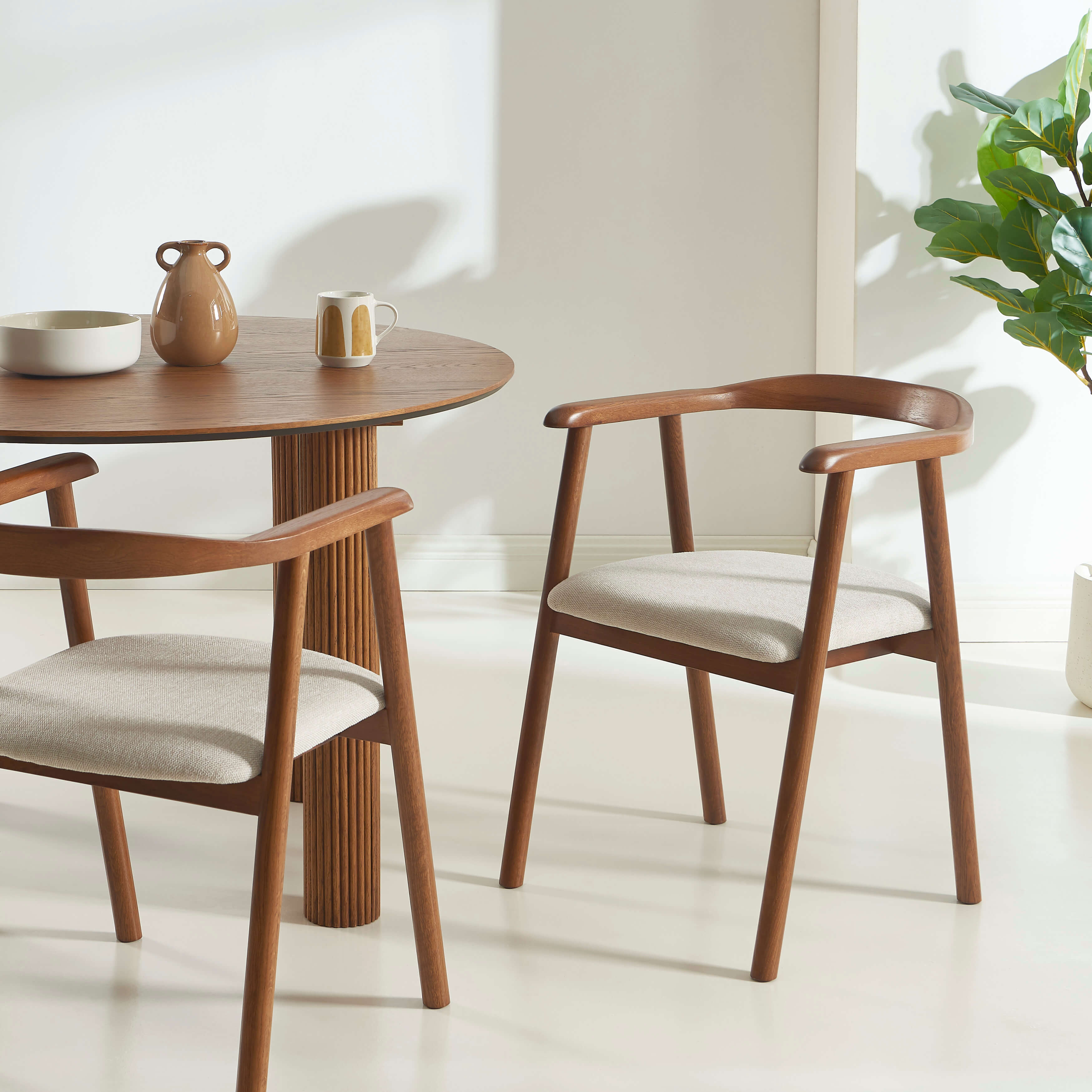 Lot de 2 chaises LORENZ chêne massif couleur noyer et tissu beige
