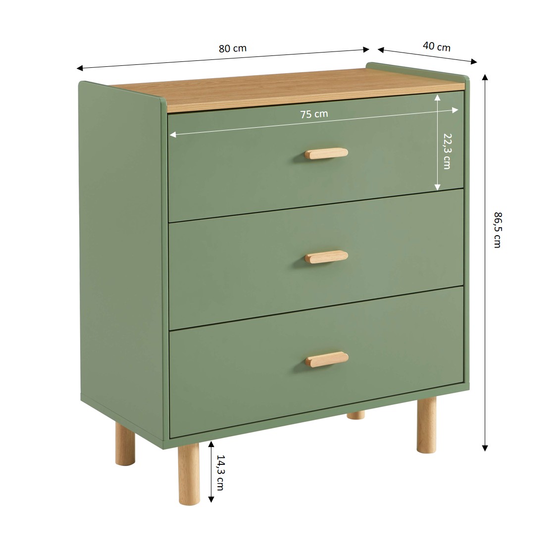 Son piètement en bois d'hévéa, son plateau et ses poignées effet bois apportent une touche authentique et chaleureuse. Ces finitions soignées permettent de créer un espace apaisant dans la chambre de votre enfant.