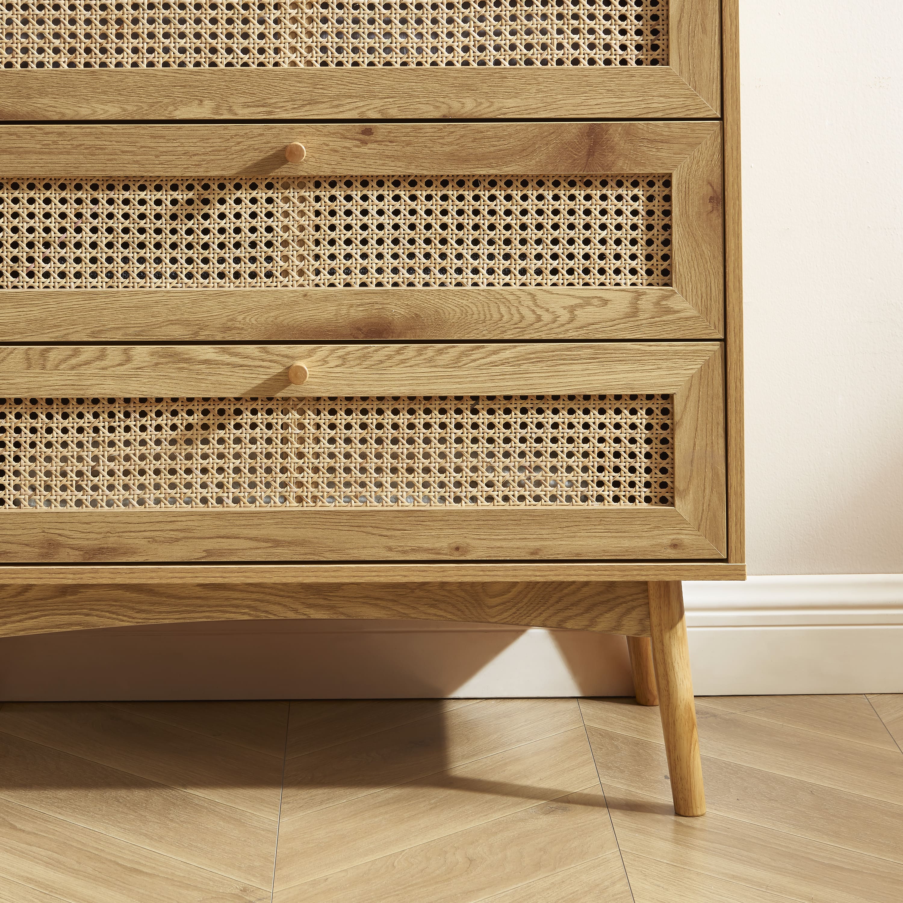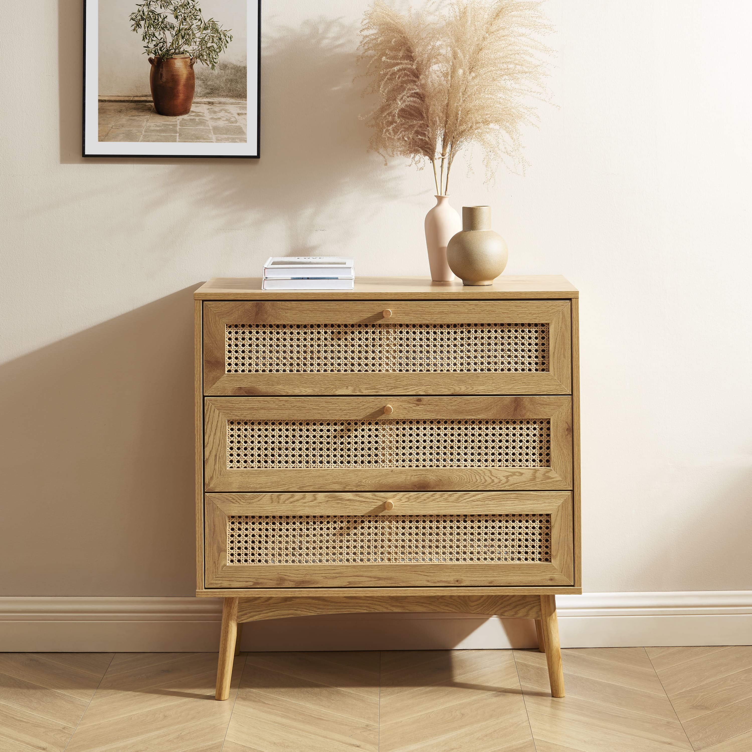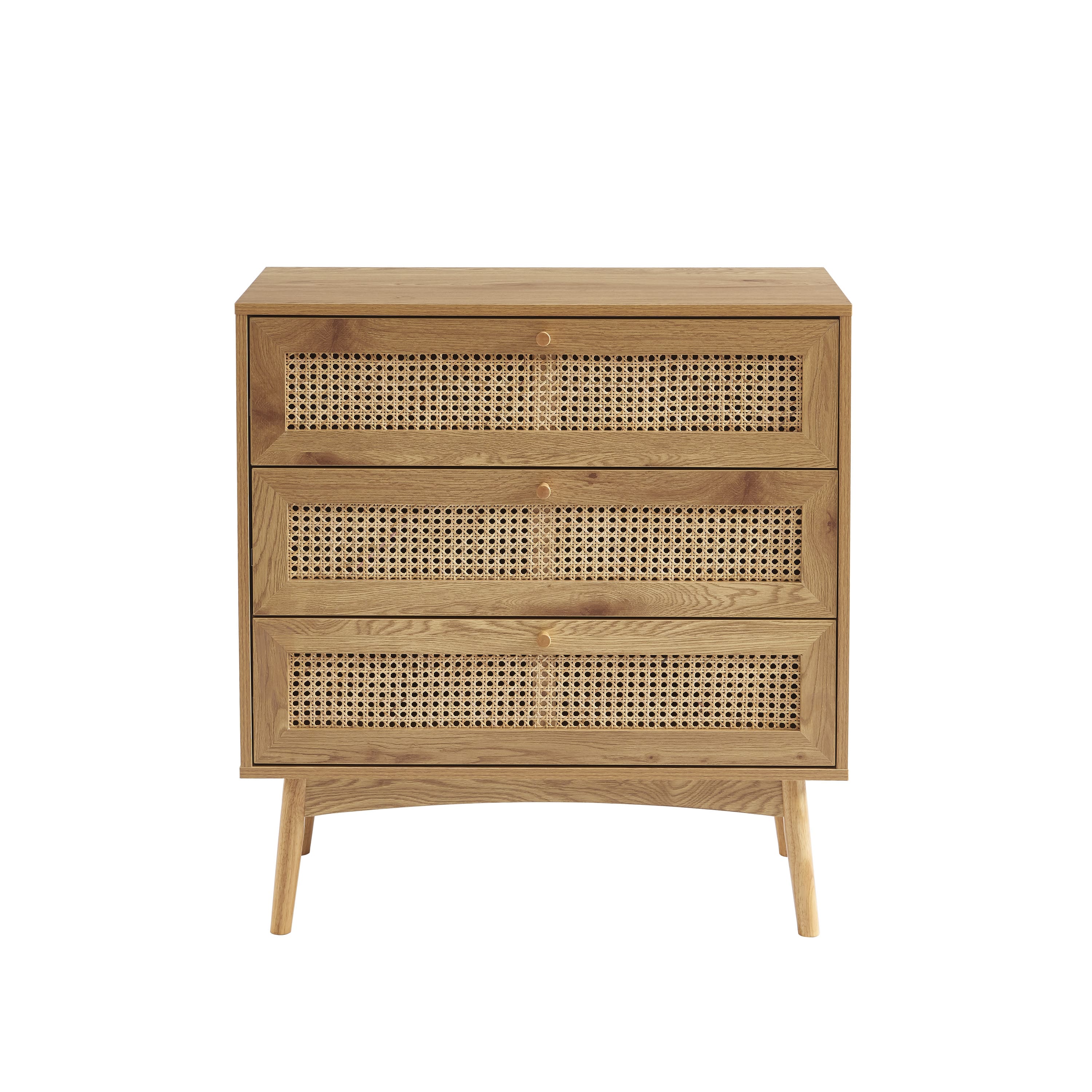Commode INES effet chêne et cannage rotin 3 tiroirs