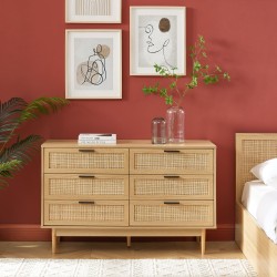 Commode AMANA 6 tiroirs effet chêne et cannage rotin 120cm