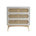 Commode SIXTINE 3 tiroirs gris perle et cannage en rotin - dimensions : 80 x 40 x 85 cm